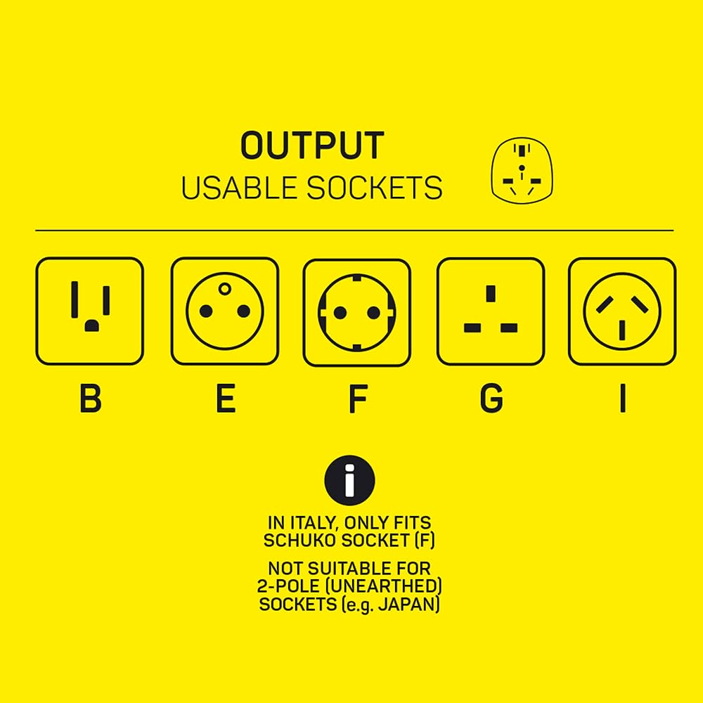 أساسيات السفر: التصميم الأنيق والمدمج للمحول، إلى جانب وزنه الخفيف، يجعله واحدًا من أساسيات السفر التي يجب اقتناؤها أثناء السفر الدولي. قد لا يعمل الاتصال الأرضي في أجزاء من إيطاليا.