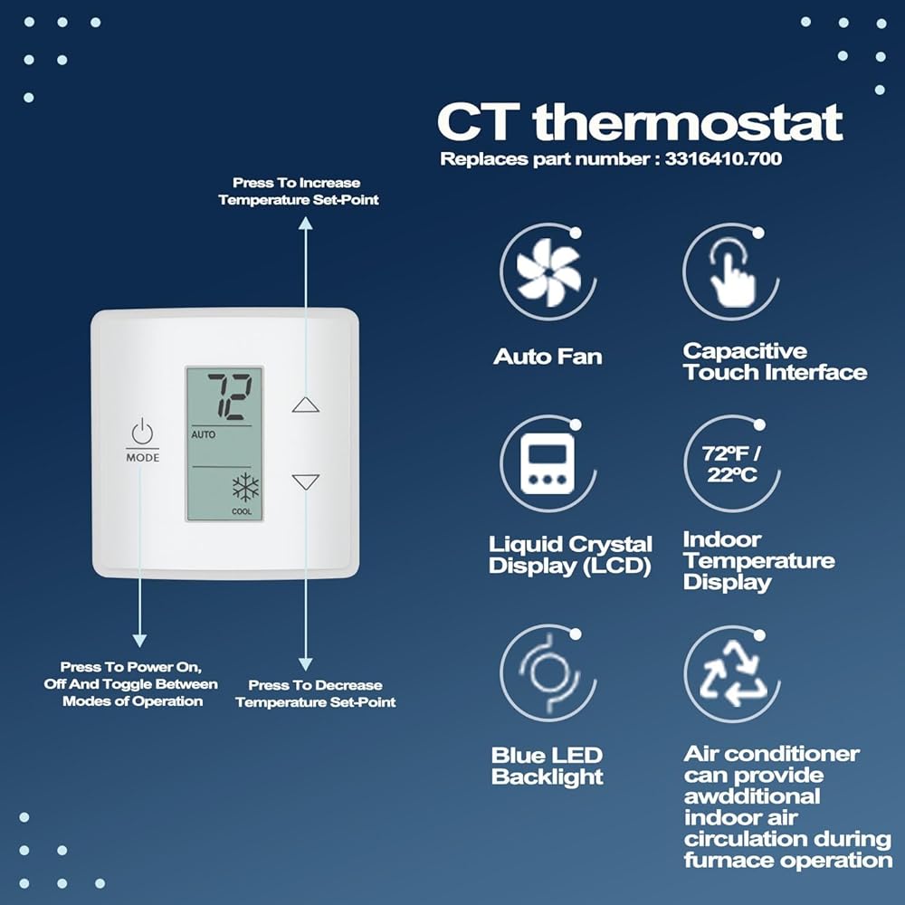 • 【ثرموستات LCD】تم تصنيع منظم الحرارة LCD هذا للمخيمين من مواد عالية الجودة، مما يضمن المتانة والأداء الموثوق. توفر شاشة LCD الكبيرة المخصصة سهولة القراءة، بينما تعمل الإضاءة الخلفية الزرقاء على تحسين الرؤية في ظروف الإضاءة المنخفضة. يسمح منظم الحرارة LCD ذو المنطقة الواحدة بالتحكم المركزي في التدفئة والتبريد الداخلي.