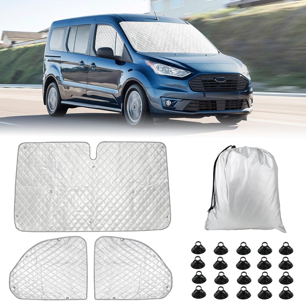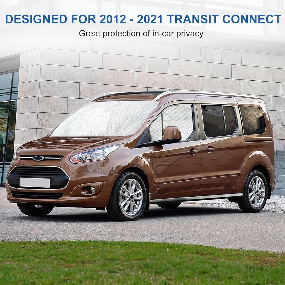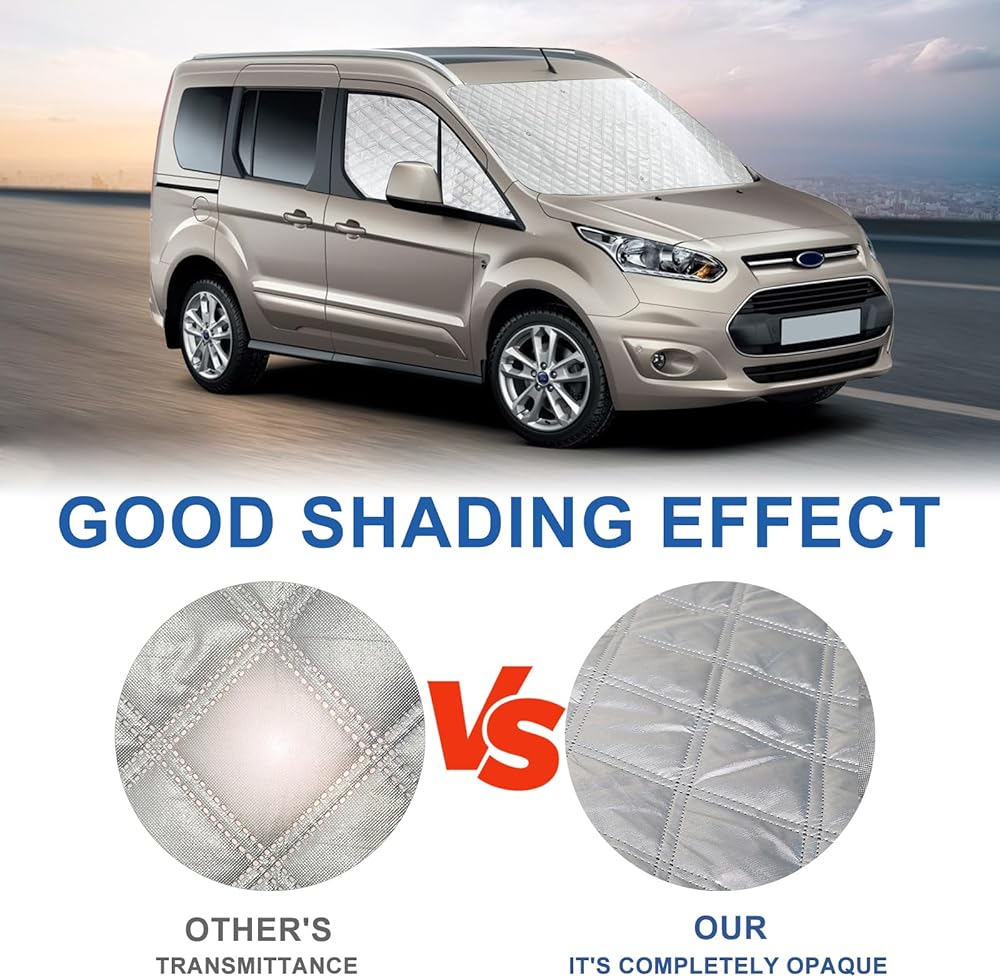 مجموعة ظلال الشمس للزجاج الأمامي متوافقة مع 2012-2021 Transit Connect، مظلة جانبية معزولة للمقعد الأمامي لجميع المواسم، عاكس للأشعة فوق البنفسجية لحماية الخصوصية
