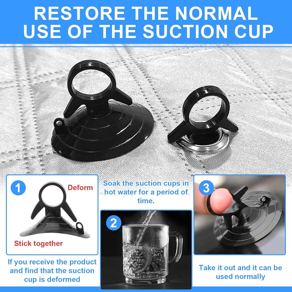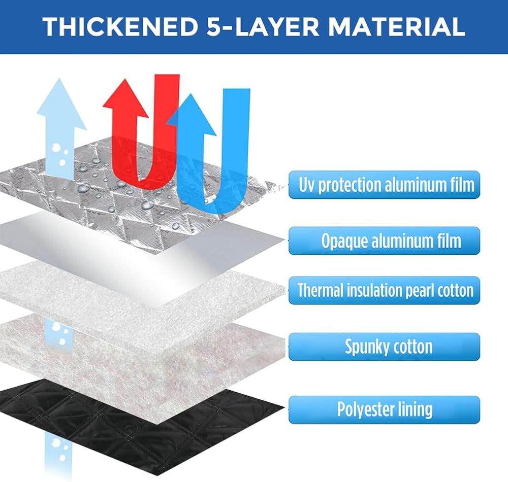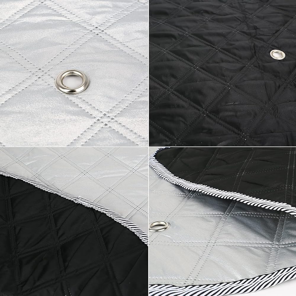 • [مادة عالية الجودة]: مصنوعة من مادة مركبة من طبقة الألومنيوم، المكون الرئيسي هو البوليستر مع طبقة من القطن في المنتصف، وتتميز بسمكها، وخفيفة الوزن، وقدرتها على الدعم الذاتي، وبسبب طريقة تصنيعها الخاصة، فهو يتطلب أكواب شفط أقل بنسبة 50% من المنتجات الأخرى. يحمي من الشمس في الصيف ويحافظ على الدفء في الشتاء، واللون الفضي على السطح له تأثير عاكس.