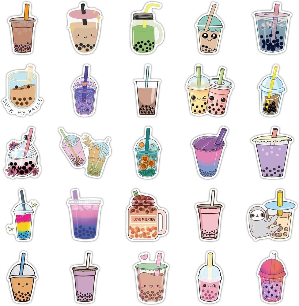 【Cost-effective Bubble Tea Stickers】50pcs Bubble Tea stickers in size 2-3.5 and extra vinyl stickers in each delicate pack. Get the best no duplicate stickers for scrapbooking at the best price.