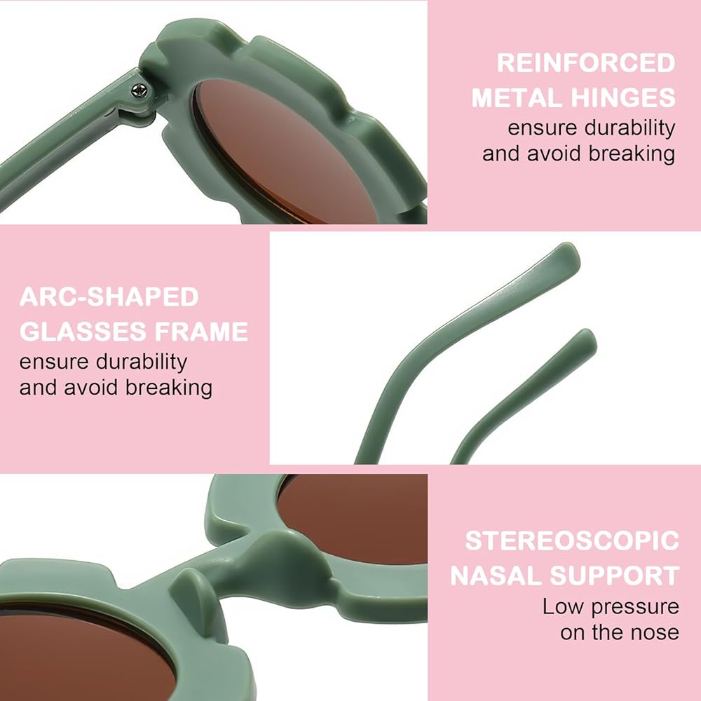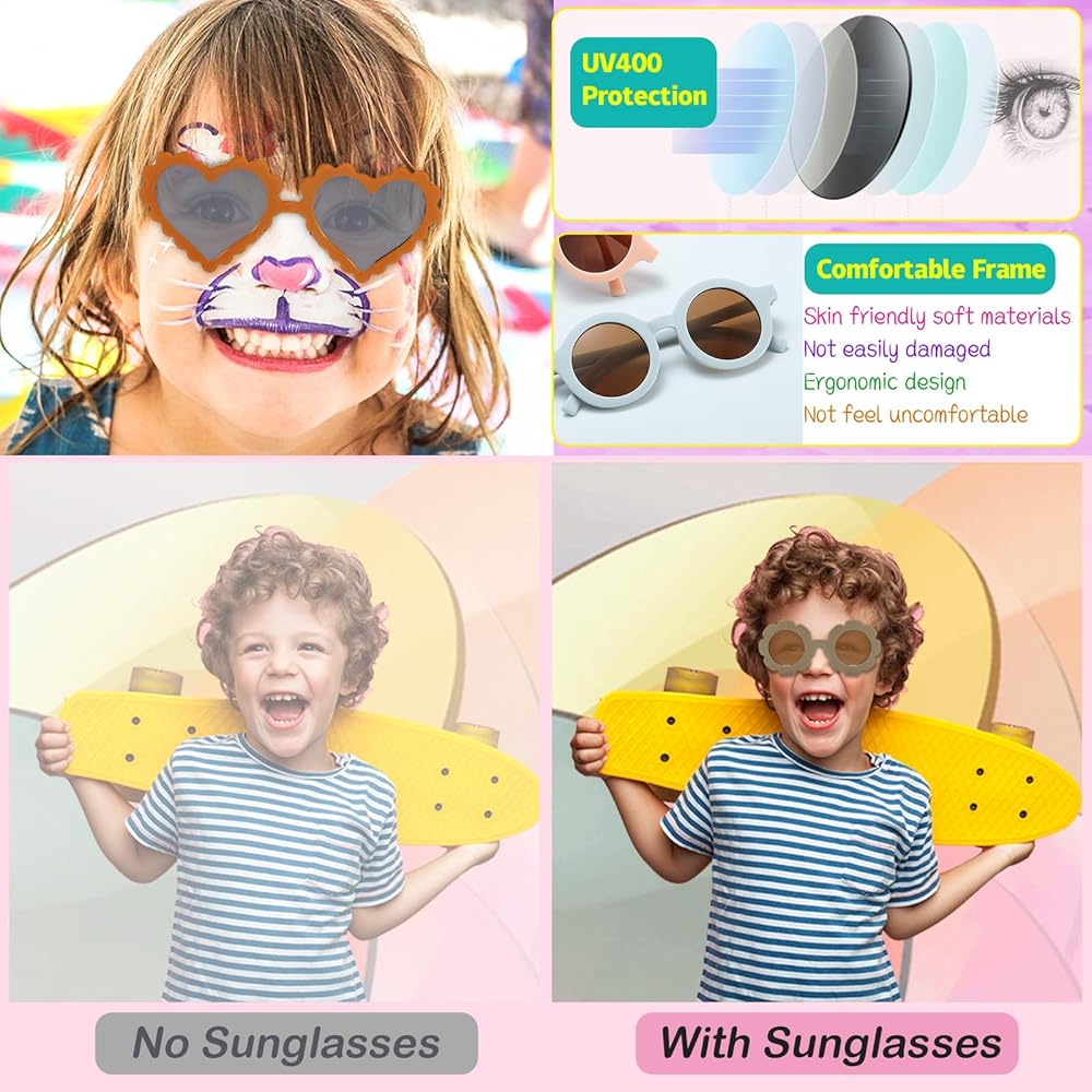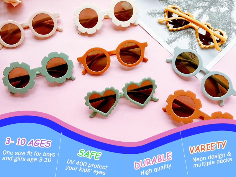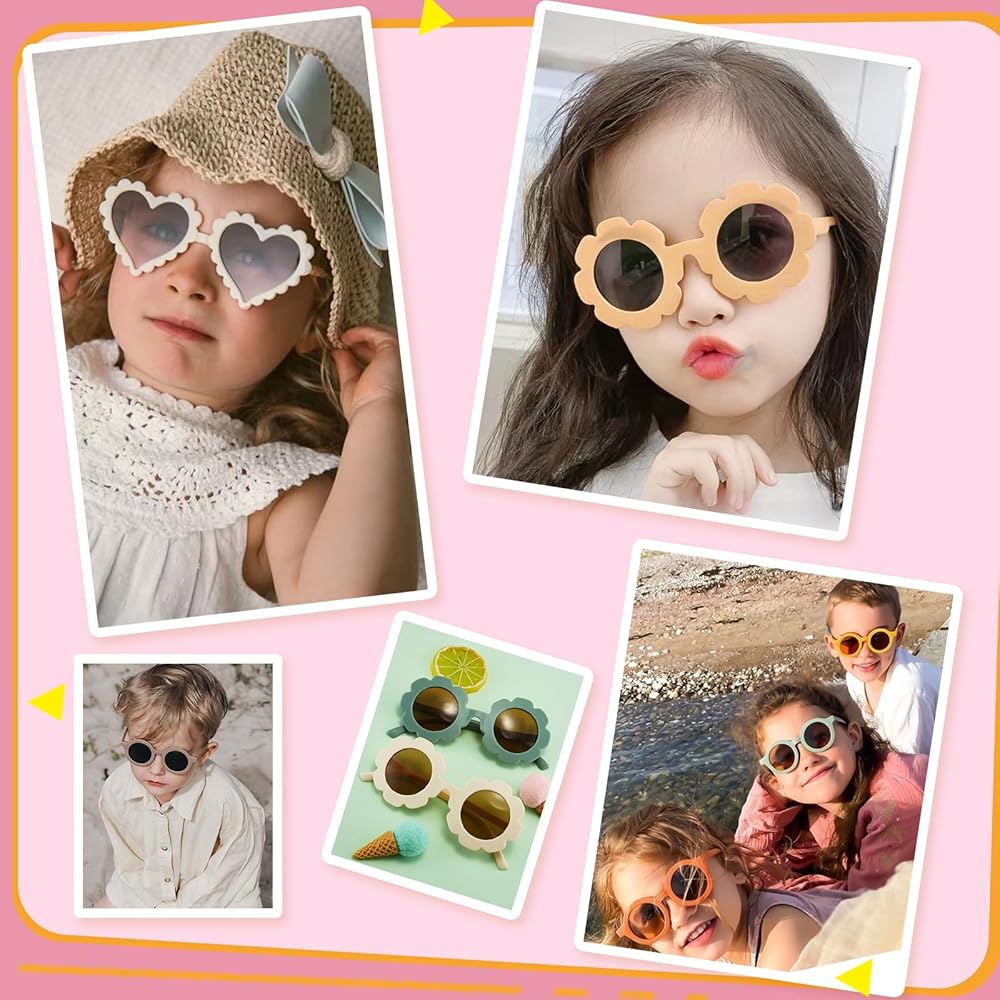 مجموعة نظارات شمسية لطيفة ورقيقة للأطفال - تم تصميم نظارات الأطفال الصغار لدينا على شكل زهرة الشمس وشكل قلب وشكل دائري في الإطارات، لطيفة ورائعة، وتكتسب بسهولة هدايا الأطفال وهي اختيار جيد لهدايا الأطفال.