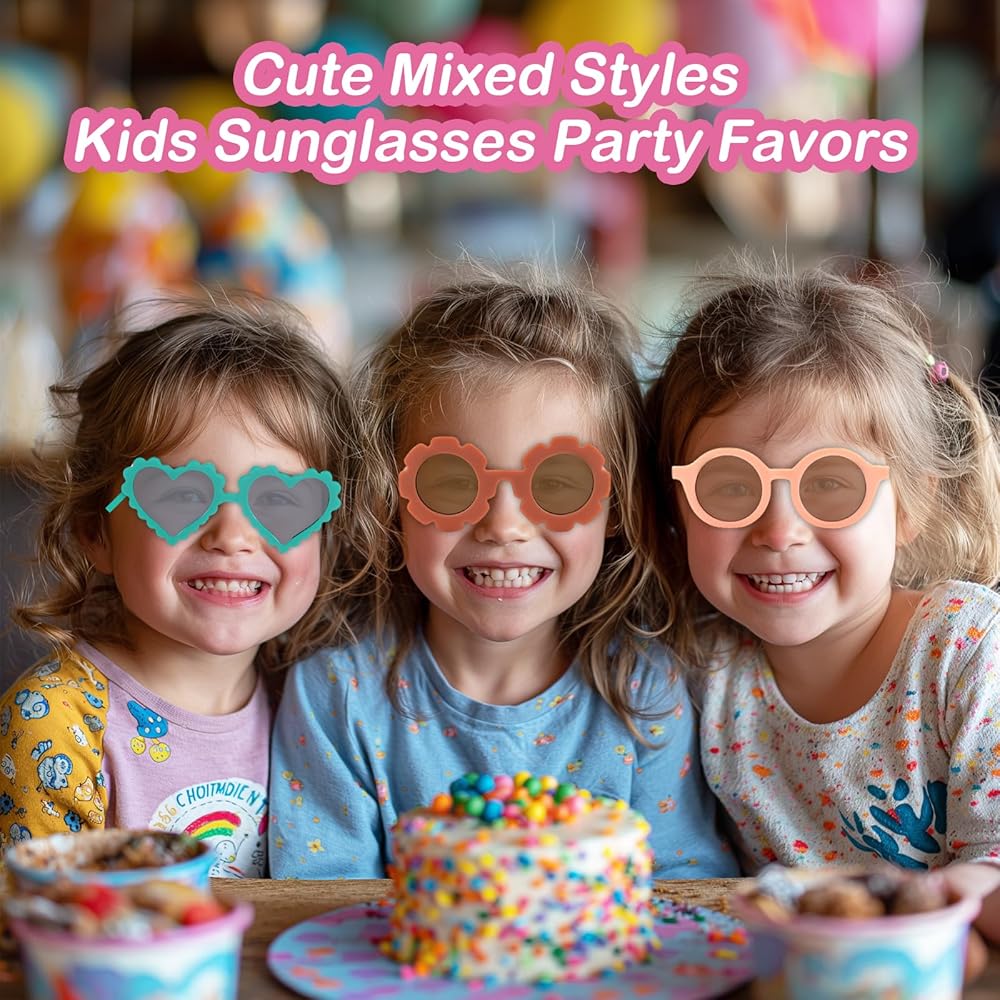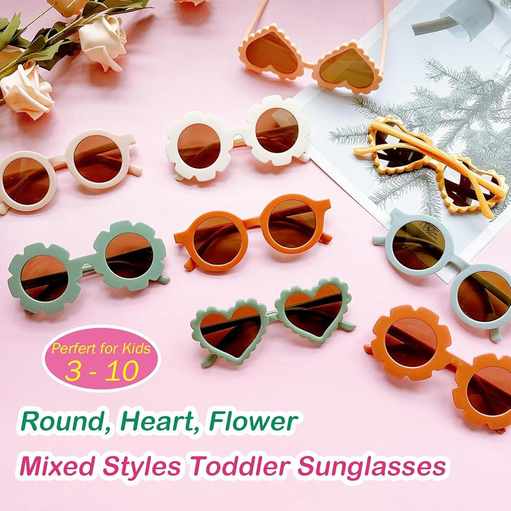 9 عبوات من النظارات الشمسية للأطفال على شكل زهرة مستديرة على شكل قلب نظارات شمسية للأطفال الصغار لطيفة للأولاد والبنات من عمر 3 إلى 10 سنوات، نظارات شمسية للأطفال هدايا الحفلات