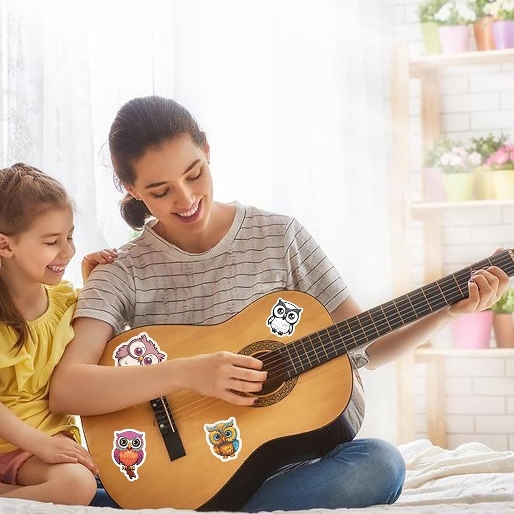 Product: Owl Stickers Quantity: 50PCS Material:PVC Size: 2-2.5 inch The graffiti owl stickers are full of charm and colorful to meet your various decoration needs The cartoon owl stickers are made of high-quality vinyl and are sun- and water-resistant. Owl stickers has good adhesion and will not peel off on its own. These stickers are resistant to cracking during removal and you can easily remove or reposition them with no residue. Widely appliced: Our stickers are perfect for personalizing laptops, computers, scrapbooks, notebooks, keyboards, mugs, notebooks, water bottles, cups, phone cases, bicycles, bedrooms, bikes, travel cases and more. Feel free to customize your items and let your personality shine through!