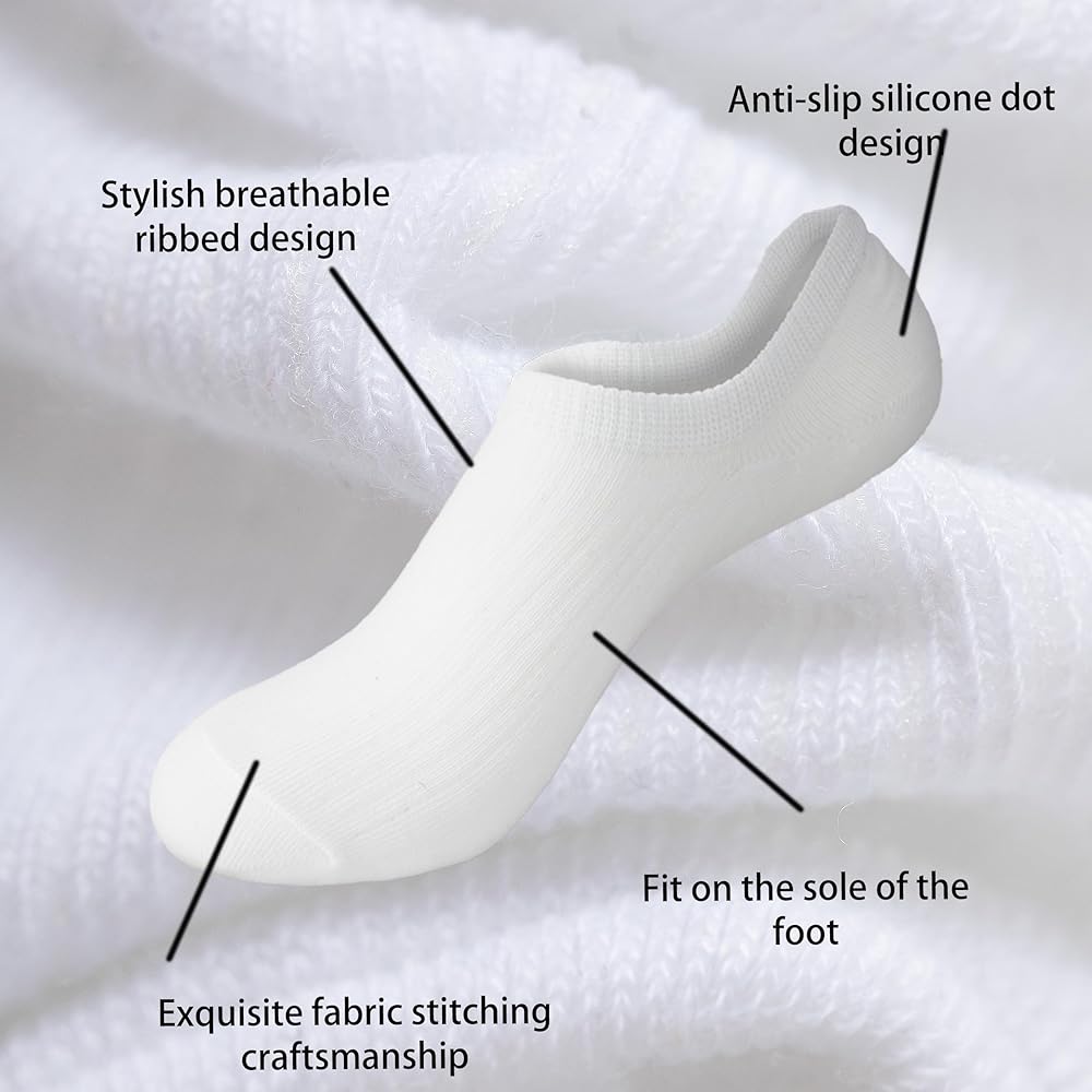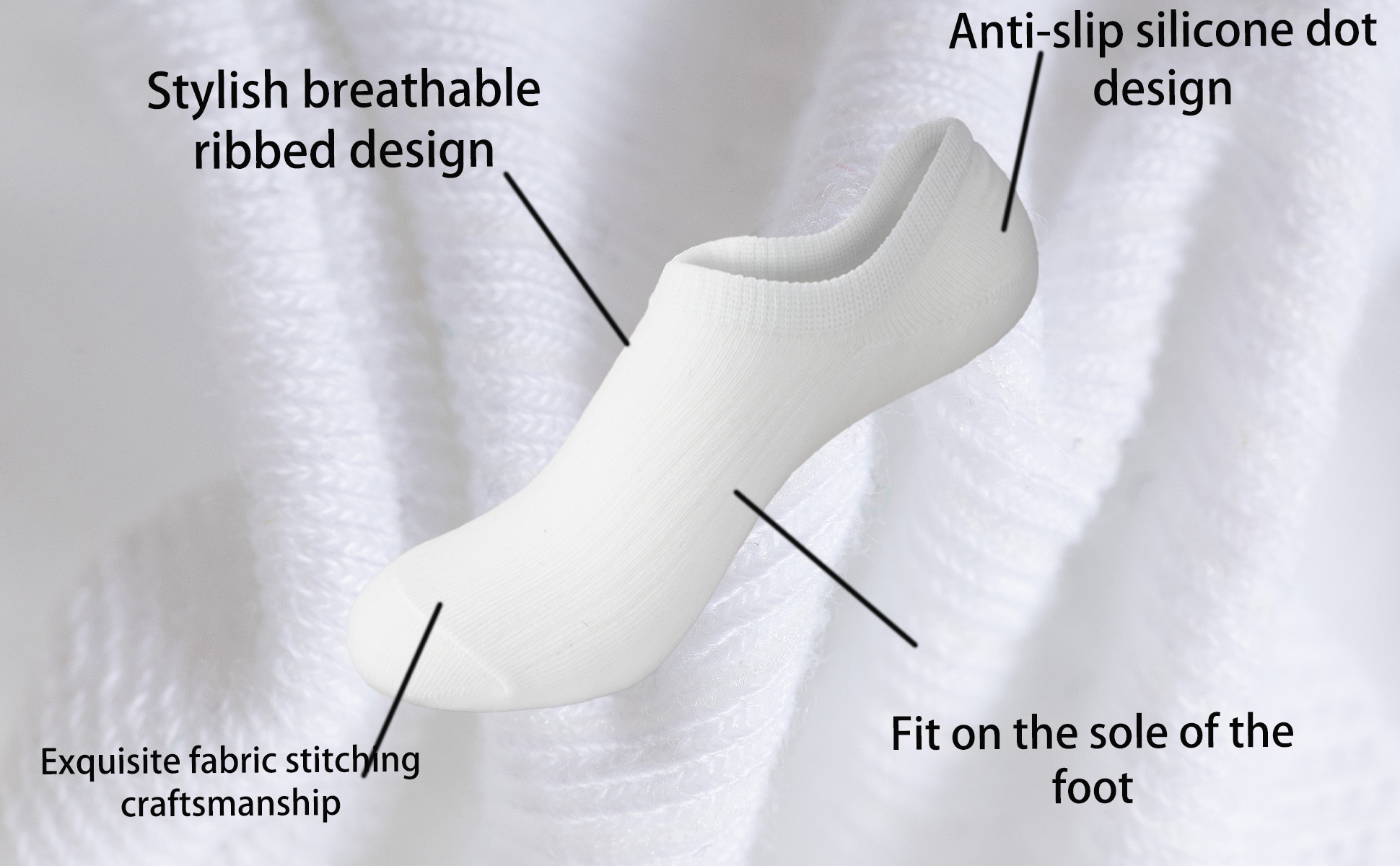 Slip-Resistant Heels: Non-slip silicone grips on the heels and toes inside the socks help prevent slipping and sliding inside shoes.