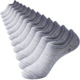 These versatile no-show socks are perfect for keeping feet comfortable all day. Made of a soft cotton blend with silicone grips in the heel and toe, they stay securely in place inside shoes without slipping or sliding. The ultra-low profile design disappears under sneakers, loafers, or flats so you can wear them without worry of socks peeking through. At 6 pairs, you'll always have a fresh set on hand whether you're heading to work, hitting the gym, or enjoying weekends. Lightweight and breathable, they keep feet dry without added bulk. A midnight black hue means they pair with any color shoe or outfit seamlessly. Grab a pack today to enjoy invisible comfort with every step.