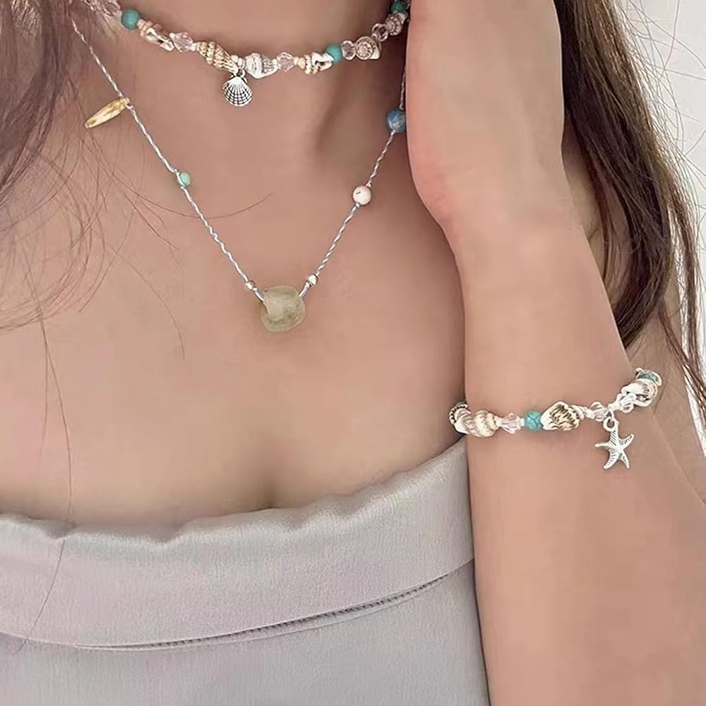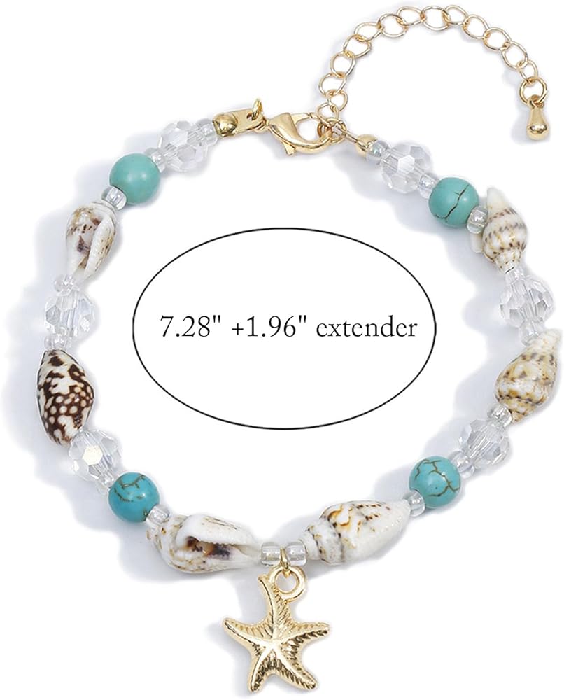 Bracelets for Teen Girls Summer Boho Bracelets for Women Shell Bracelet Bohemian Starfish Bracelet Vintage Turquoise Bracelet Summer Beach Jewelry Gifts Party Favors for Teens Cute Summer Essentials