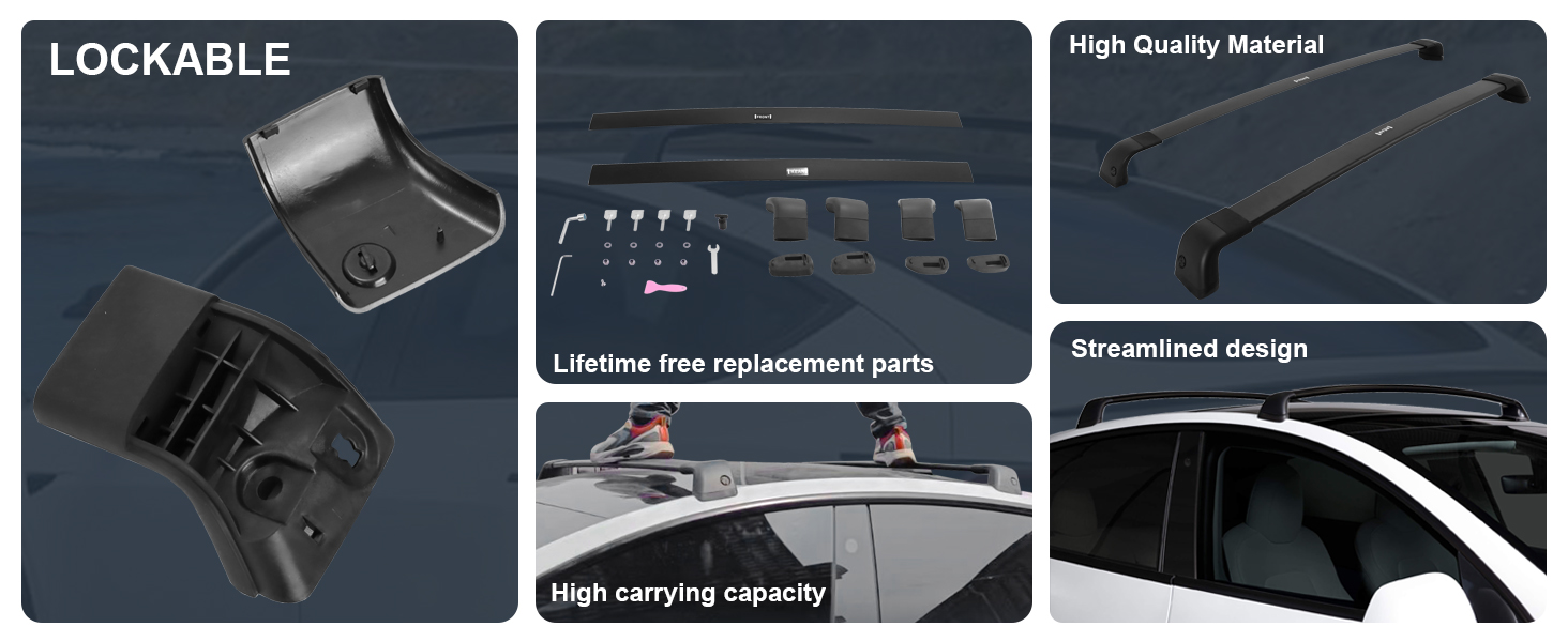 ضوضاء أقل: يستخدم رف البضائع على السطح تصميمًا انسيابيًا ديناميكيًا هوائيًا يوفر الحد الأدنى من المقاومة للهواء، ويقلل بشكل فعال من مقاومة الرياح والضوضاء.