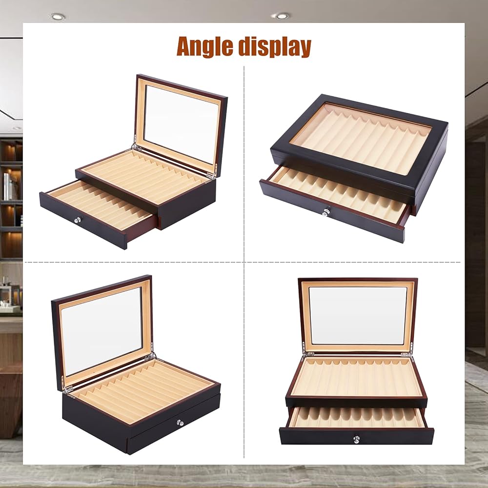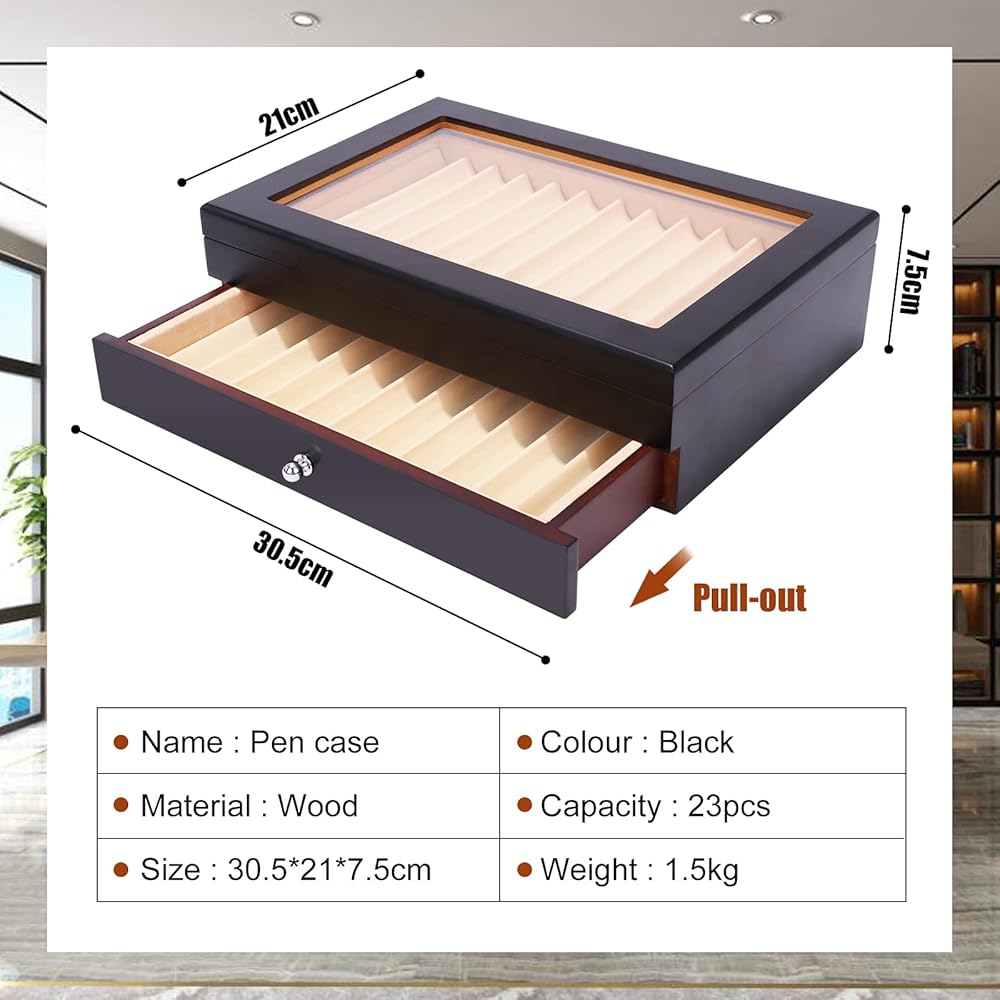 - [السعة]: تتميز حافظة الأقلام وصندوق العرض بتصميم واسع وعملي، ويمكن تخزين وتنظيم ما يصل إلى 23 قلمًا.