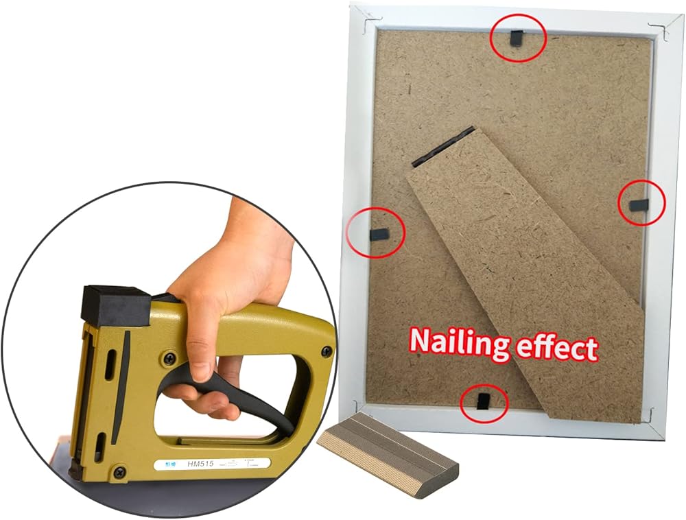 • 【إطار صور مثل المحترفين】مسدس تأطير الصور الخاص بنا هو أدوات التجميع الوحيدة التي تحتاجها لجعل أعمالك الفنية أو صورك أو تعليق الحائط الخاص بك تظهر كما لو تم تأطيرها بواسطة محترف.