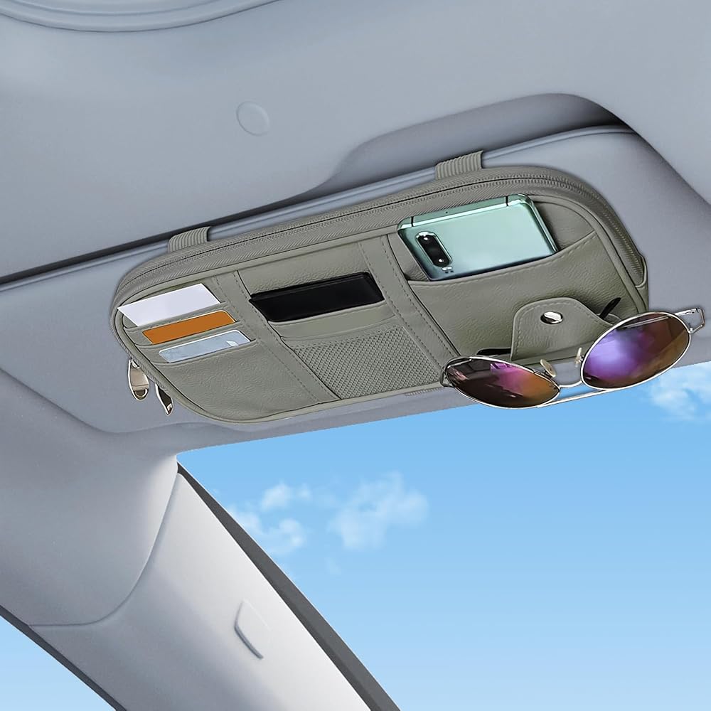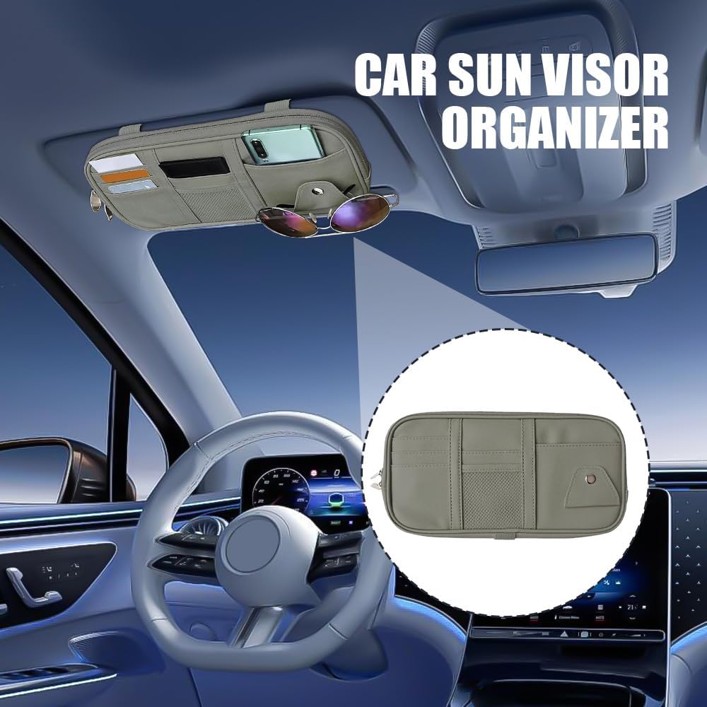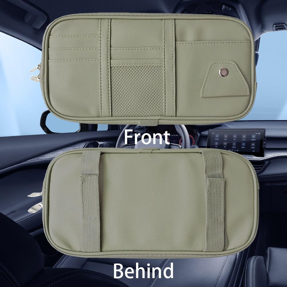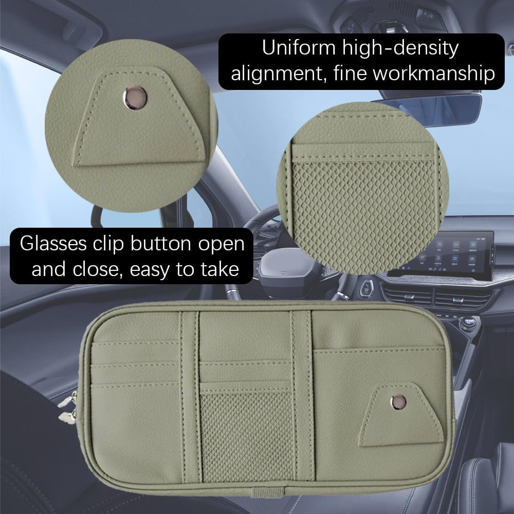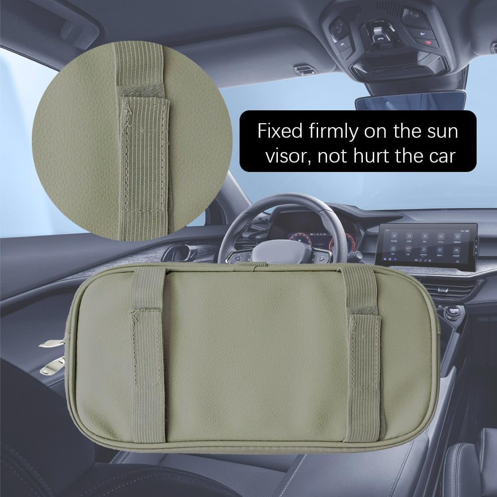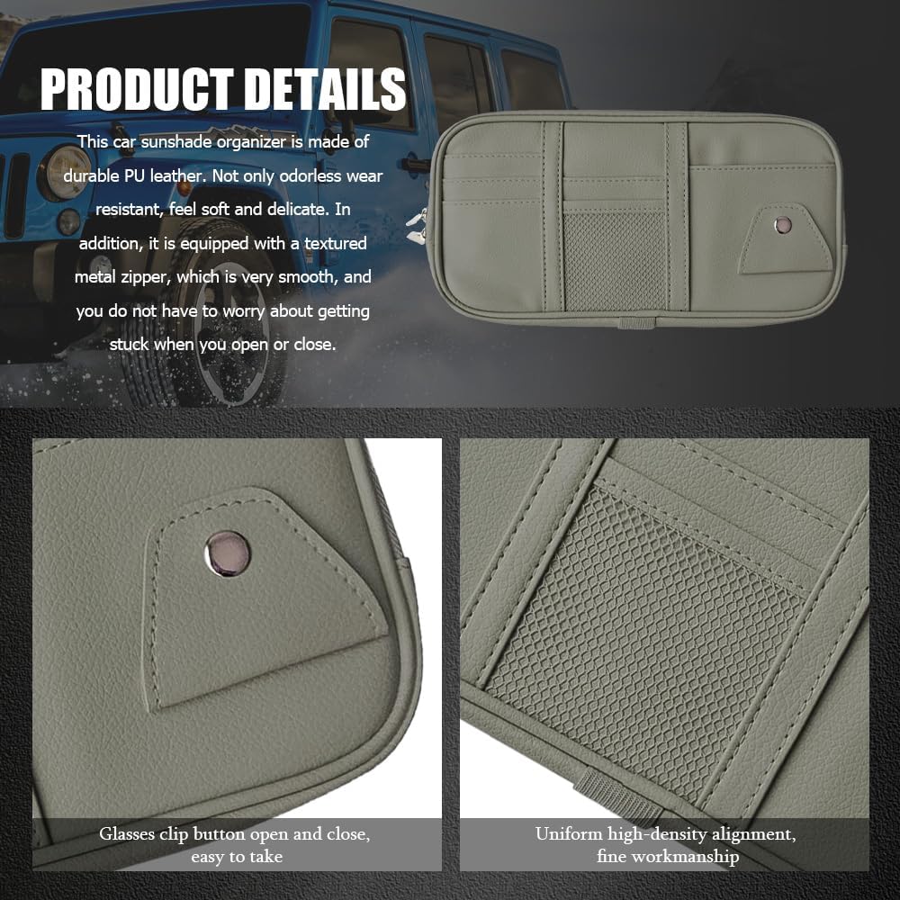 [High quality product]: This Car Sunshade Card Bag is made of durable PU leather. Not only odorless wear resistant, feel soft and delicate. In addition, it is equipped with a textured metal zipper, which is very smooth, and you do not have to worry about getting stuck when you open or close.