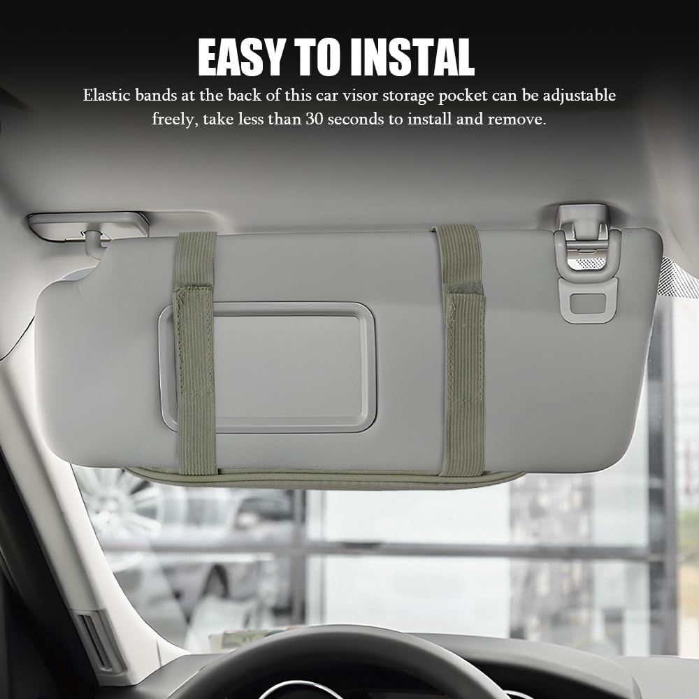[Elastic Velcro strap]: The Installation Method of this car sunshade card bag storage bag is fixed on the sunshade board through Velcro strap. This high elastic band is fixed in the upper, middle and lower three positions of the storage bag with elastic design, installation is very firm, and will not damage the car body.