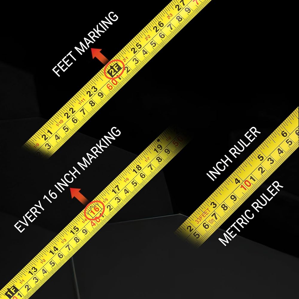 قياس النظام المزدوج الدقيق، الاستخدام في جميع أنحاء العالم: تم تجهيز شريط القياس الفولاذي الخاص بنا بمقاييس بوصة واضحة ومقاييس مترية، سواء كانت هندسة دقيقة وفقًا للمعايير الدولية أو تحسين المنزل وفقًا للعادات التقليدية، مع شريط قياس واحد في يدك، يمكنك القياس في كل مكان العالم دون قلق. تتم إضافة علامات خاصة مقاس 16 بوصة وعلامات قدم لتلبية الاحتياجات المحددة لصناعات النجارة والبناء الاحترافية، بحيث يكون كل قياس دقيقًا.