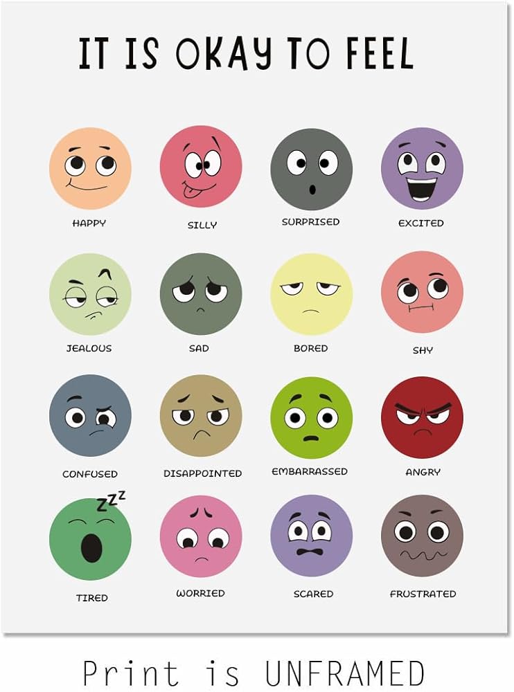 • Size: Each print is sized at 8"x10", providing a standard dimension that suits a variety of environments, such as classrooms, playrooms, school counselor offices,nursery,kids rooms or therapy spaces.