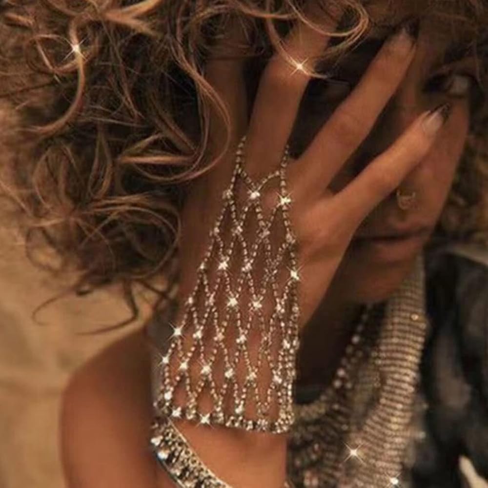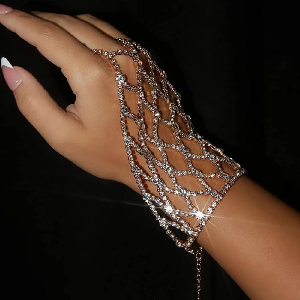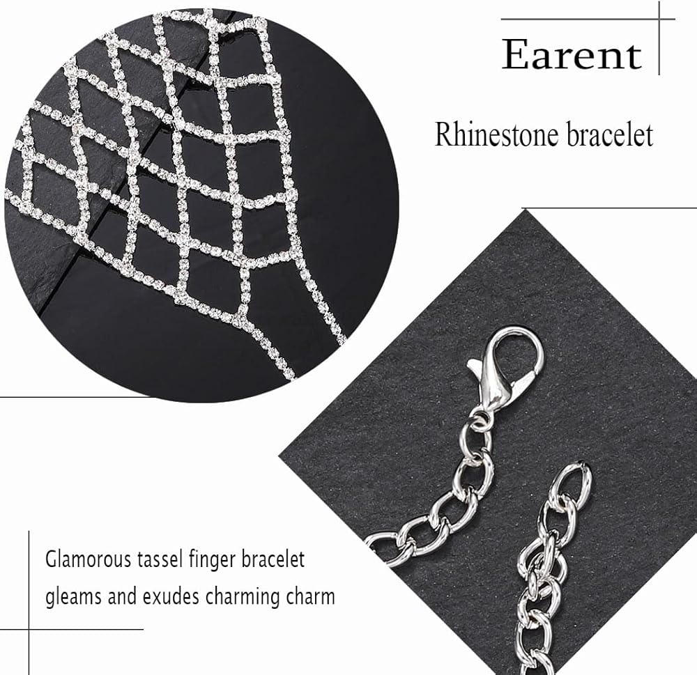 EARENT حجر الراين خاتم سوار الفضة Saprkly الزفاف سلسلة اليد بلينغ الإسورة البنصر ربط أساور اليد تسخير اليد مجوهرات للنساء والفتيات