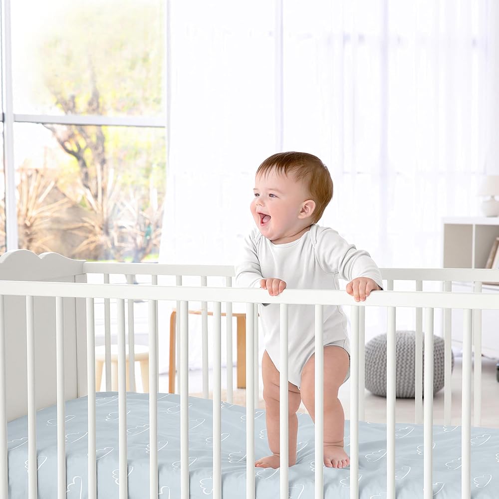 - قاعدة مرنة بالكامل لملاءمة آمنة لمعظم أسرة الأطفال ذات الحجم القياسي وأسرّة الأطفال الصغار