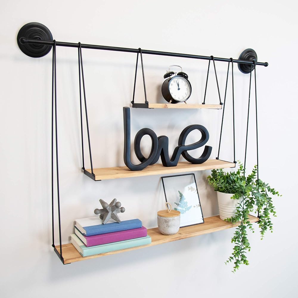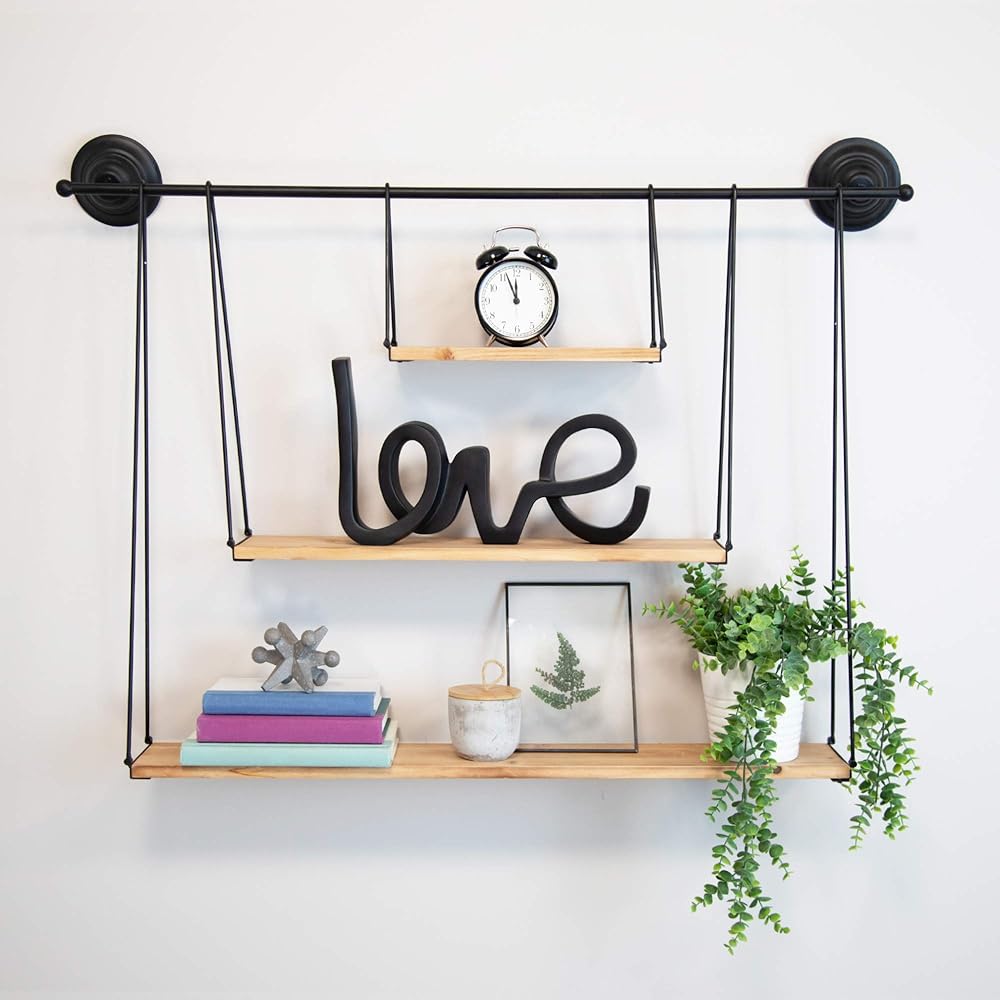 ✅ STAY ORGANIZED IN STYLE - Have a well-decorated and clutter-free home with this 3-tier wooden wall shelf. It has natural knots and a matte black metal finish that you'll surely adore.