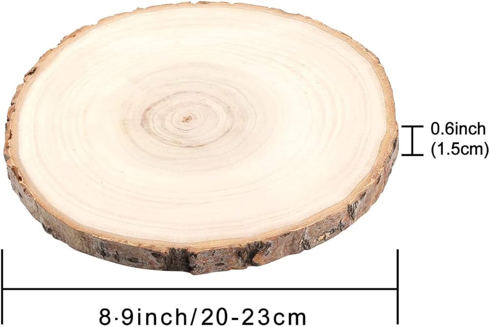 الحجم (تقريبًا): القطر 9-10 بوصة، السمك 0.6 بوصة، يرجى ملاحظة أن جميع شرائح الخشب قد تختلف قليلاً في الحجم، ولكنها تقع في نطاق 9-10 بوصة