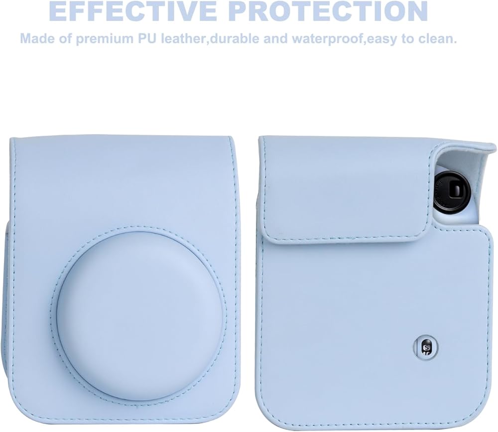 【حماية فعالة】: تتميز حقيبة الكاميرا الفورية بجلد البولي يوريثان، ومتين، ومقاوم للماء. الجزء الداخلي من الألياف الدقيقة الناعمة يمكنه حماية الكاميرا الفورية الصغيرة 12 بشكل فعال.