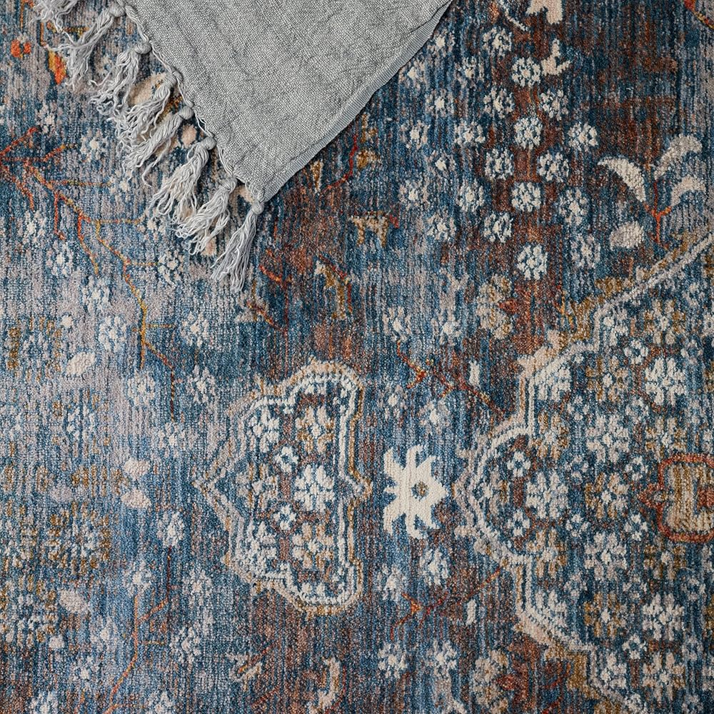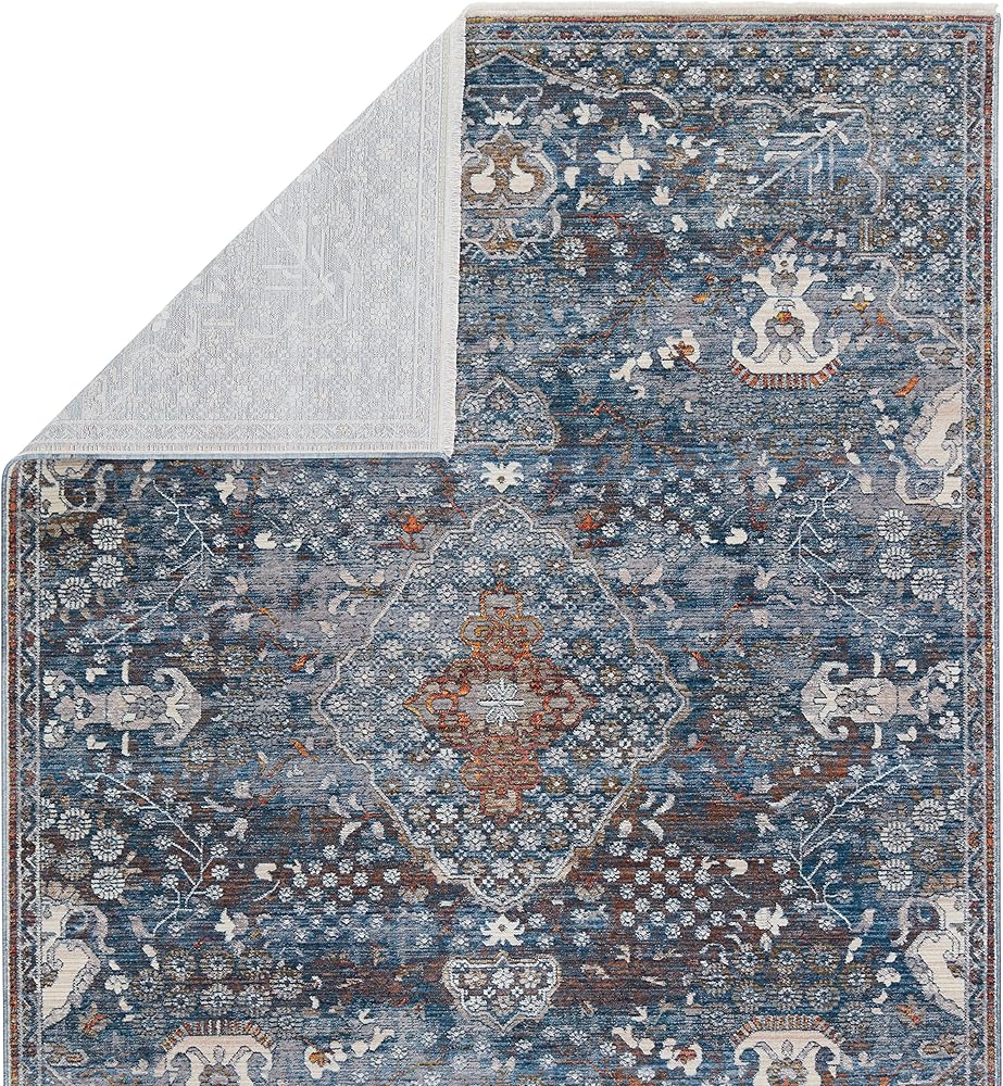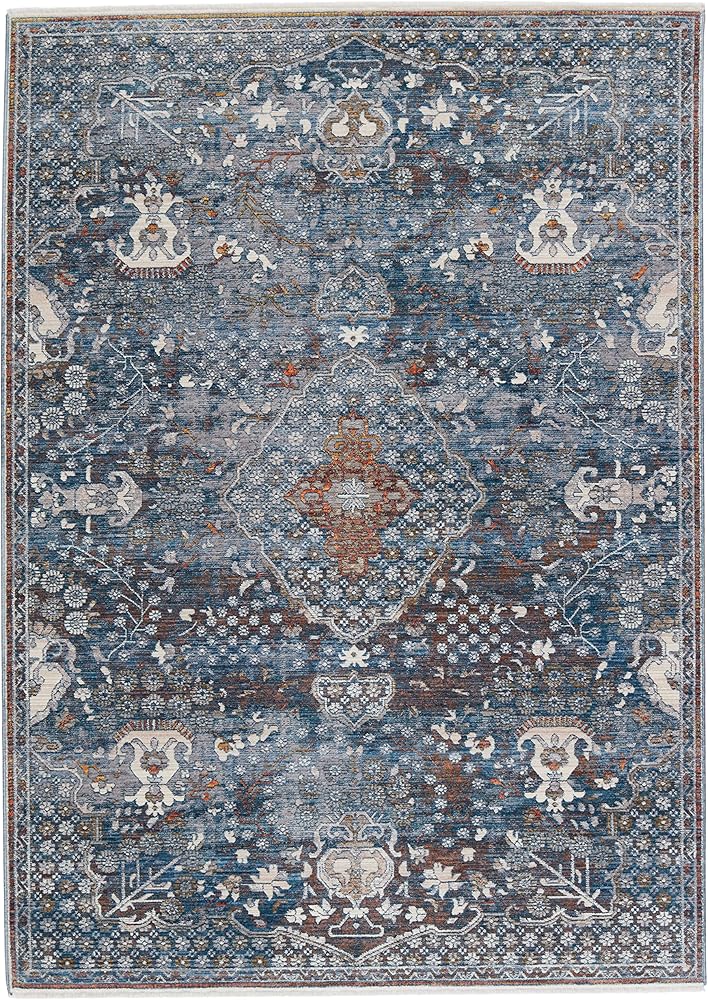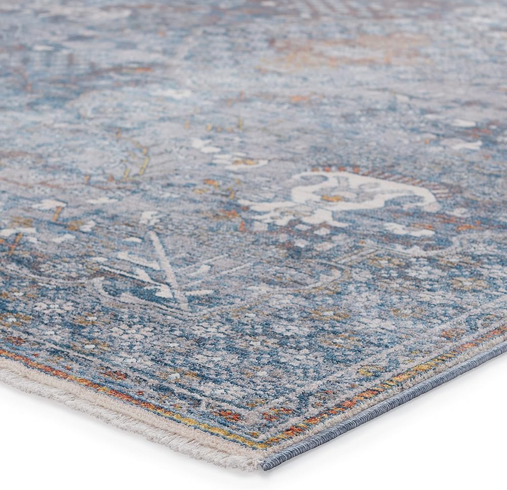 A complementary mix of vibrant and natural tones combine to create the effortlessly stylish Terra collection. Space-dyed polyester lends a unique colorway and subtle, dimensional sheen to the stunningly detailed design. The eye-catching and detailed Harkin rug offers an ornate accent with an elegant medallion motif in rich hues of blue, yellow, orange, and gray.