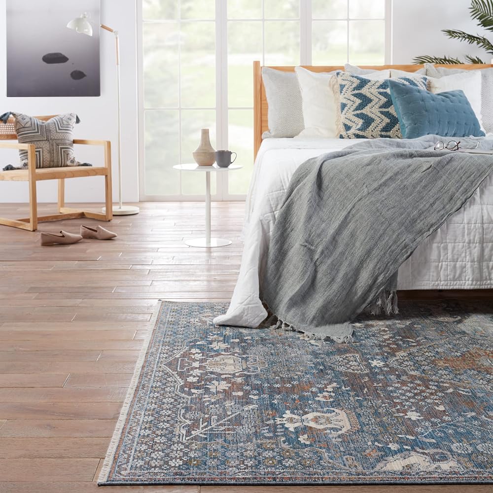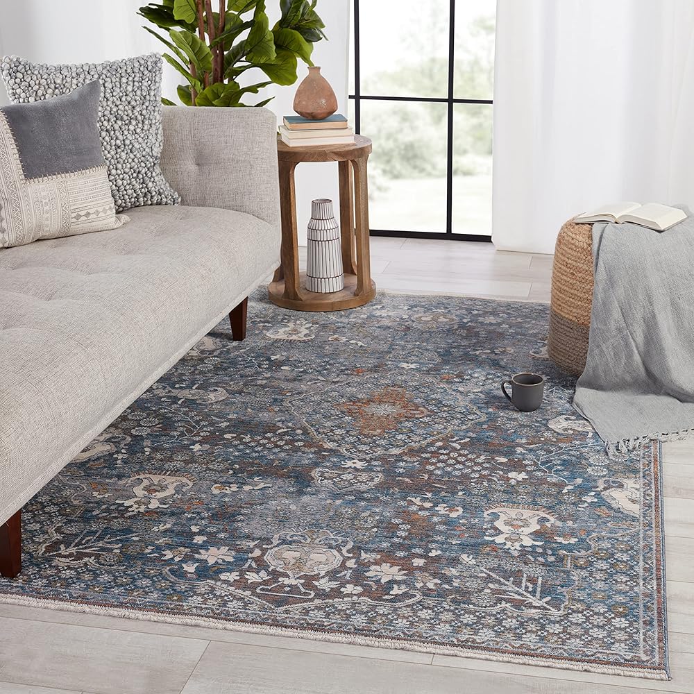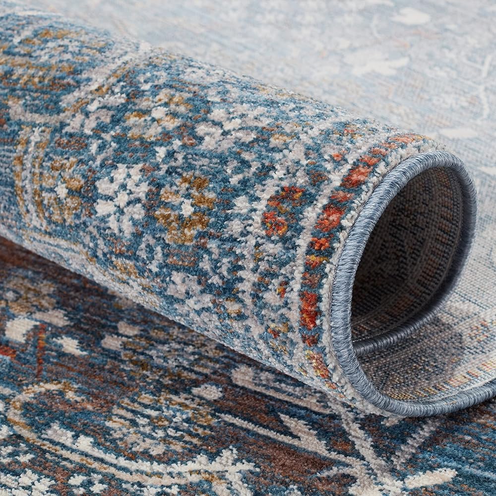 A complementary mix of vibrant and natural tones combine to create the effortlessly stylish Terra collection. Space-dyed polyester lends a unique colorway and subtle, dimensional sheen to the stunningly detailed design. The eye-catching and detailed Harkin rug offers an ornate accent with an elegant medallion motif in rich hues of blue, yellow, orange, and gray.