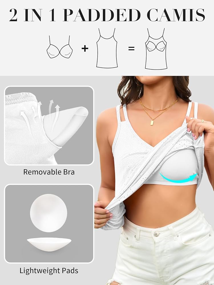 حمالة صدر مبطنة مدمجة: قمصان داخلية مع حمالة صدر مبطنة قابلة للإزالة وشريط مرن أسفل الصدر يوفر دعمًا بسيطًا وسميكًا بما يكفي لإخفاء الحلمات