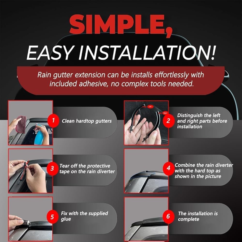 Simple Installation: Effortlessly mount the rain diverter extensions using the provided adhesive, eliminating the need for additional tools.