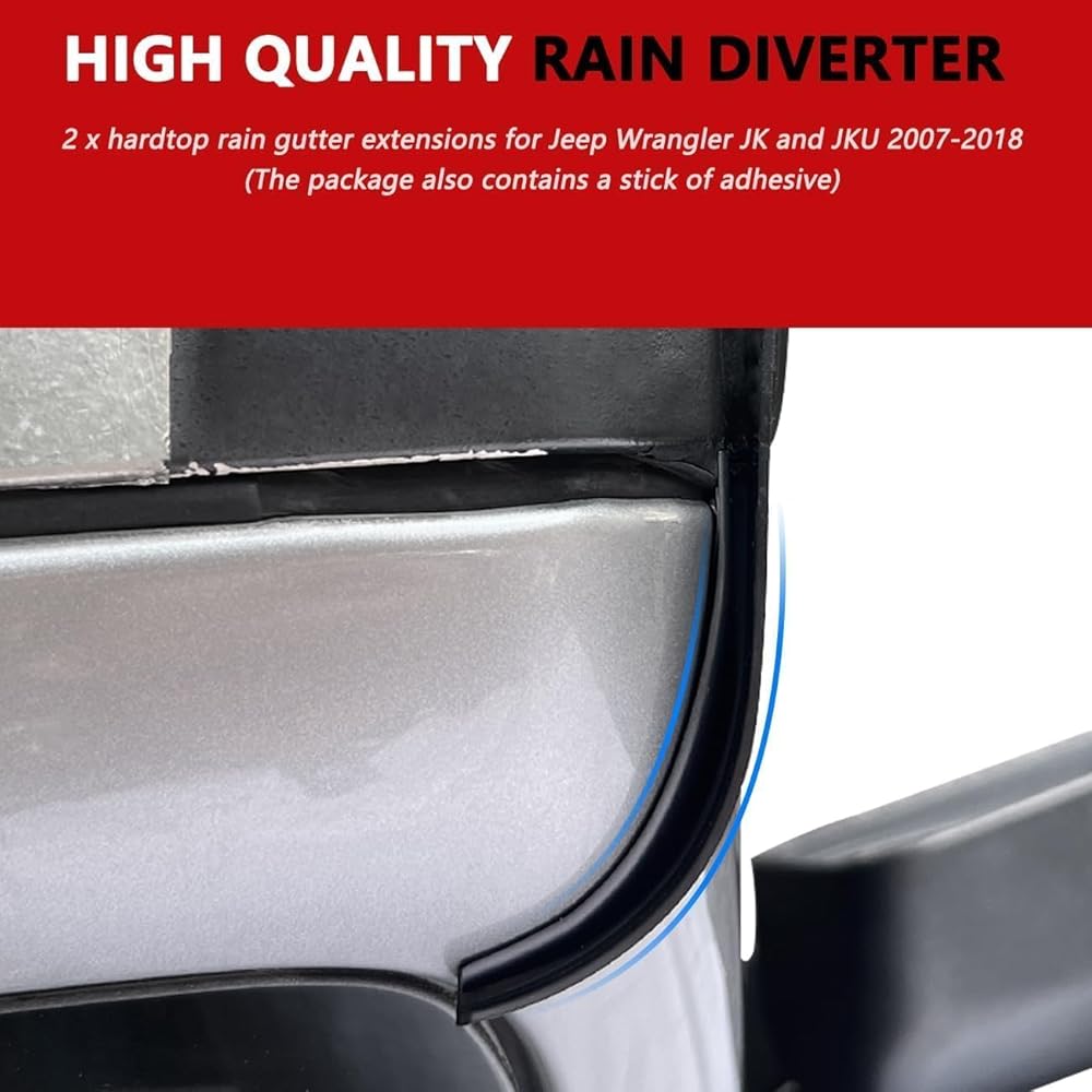 Fitment Enhancement: Rain diverter extensions tailored for Jeep Wrangler JK JKU (2007-2018) equipped with the original hardtop.