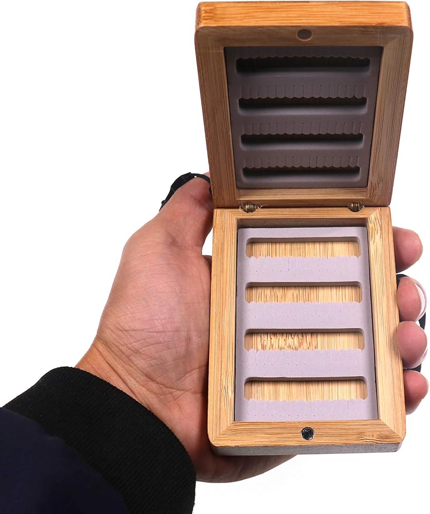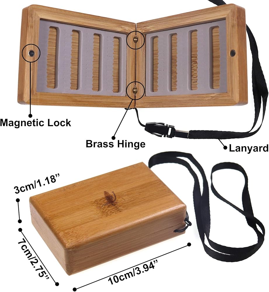 Wifreo 2 قطعة من خشب الخيزران لصيد السمك صندوق الطيران خفيف الوزن على الوجهين