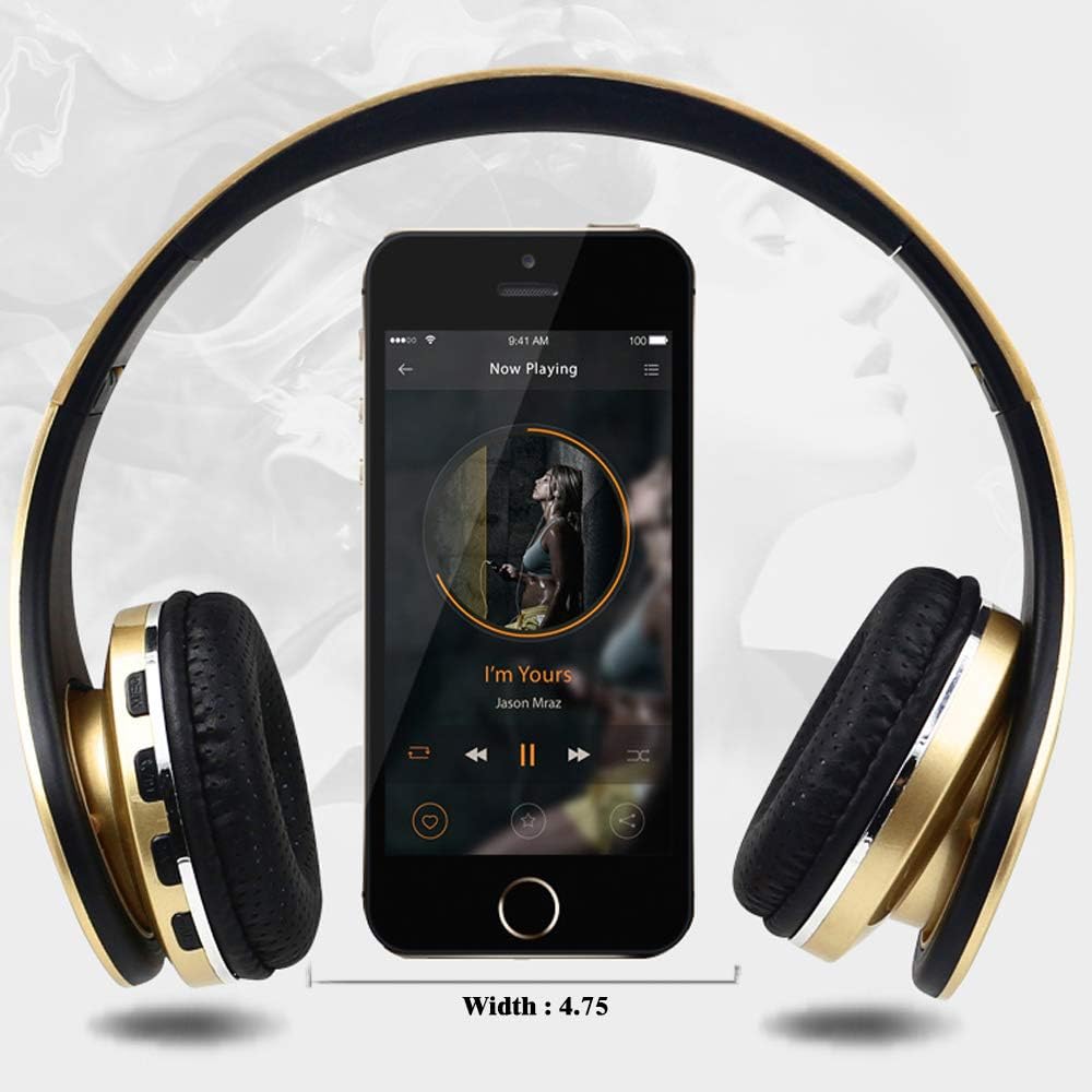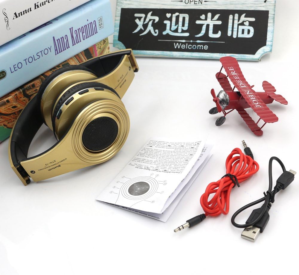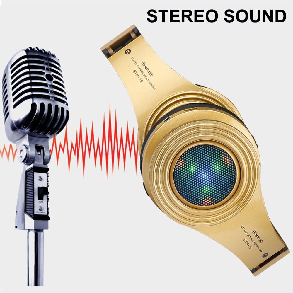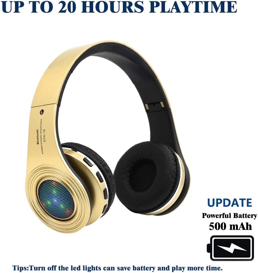 سماعات بلوتوث لاسلكية، سماعة رأس بإضاءة LED فوق الأذن مع ميكروفون، صوت ستيريو، للهواتف المحمولة والأجهزة اللوحية والكمبيوتر للأطفال والأولاد والبالغين - ذهبي