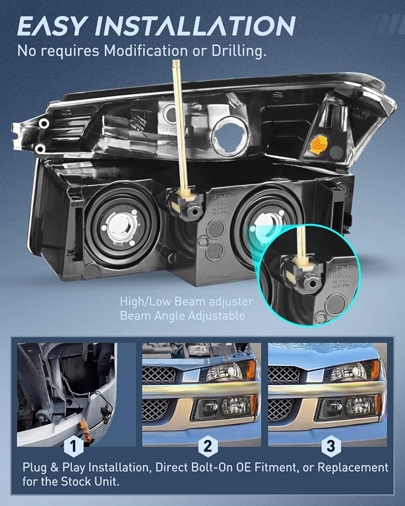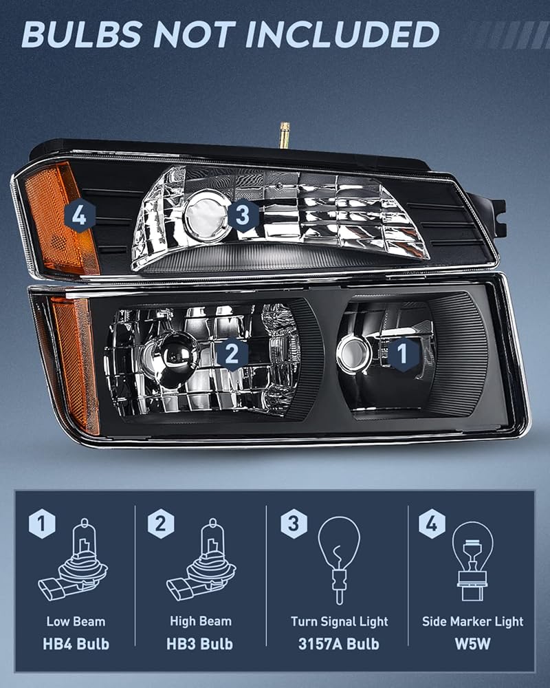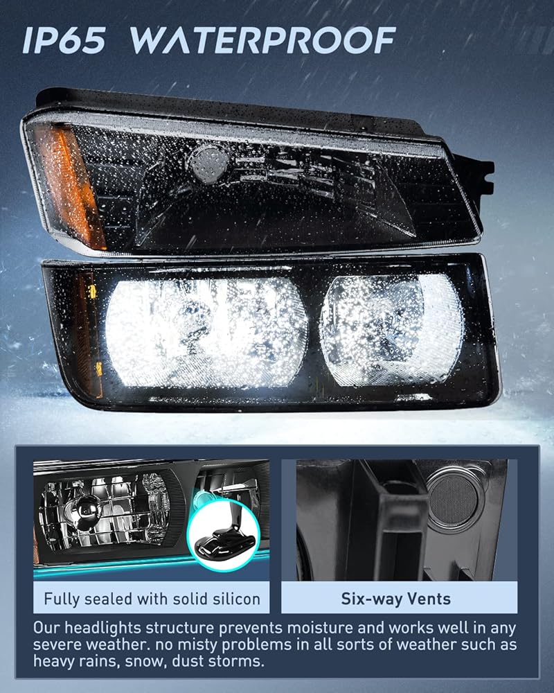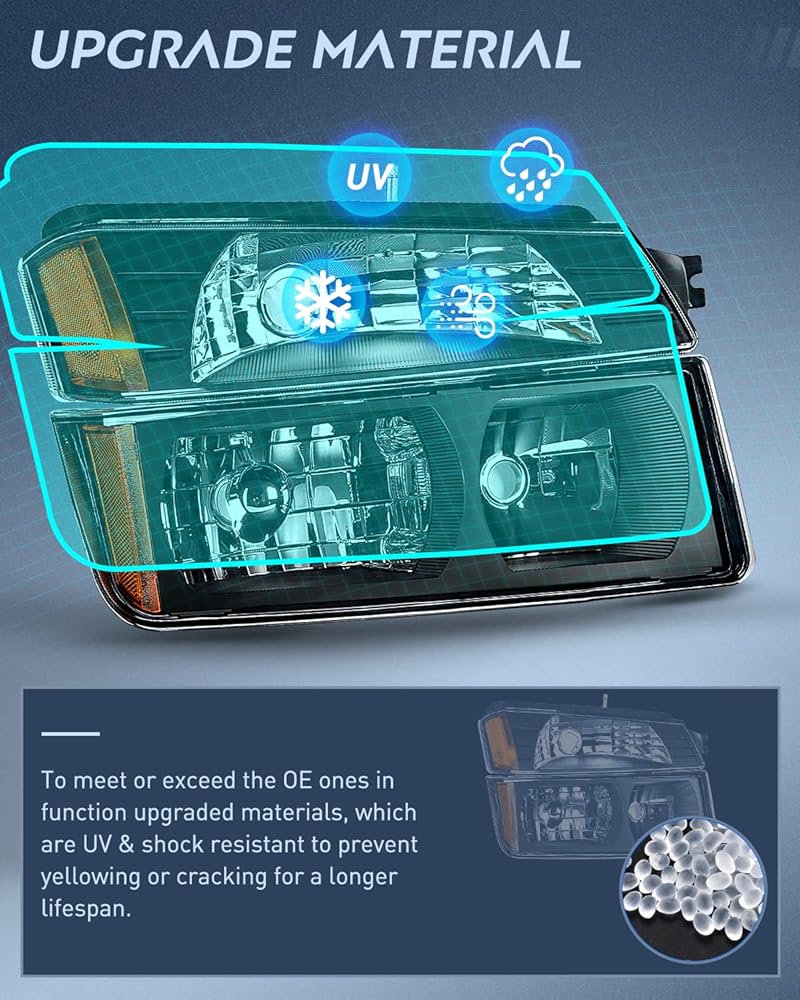 الملاءمة: تتوافق مجموعات المصابيح الأمامية مع 2002 2003 2004 2005 2006 Chevy Avalanche مع غطاء الجسم. لا تناسب نماذج الكسوة غير الجسم.