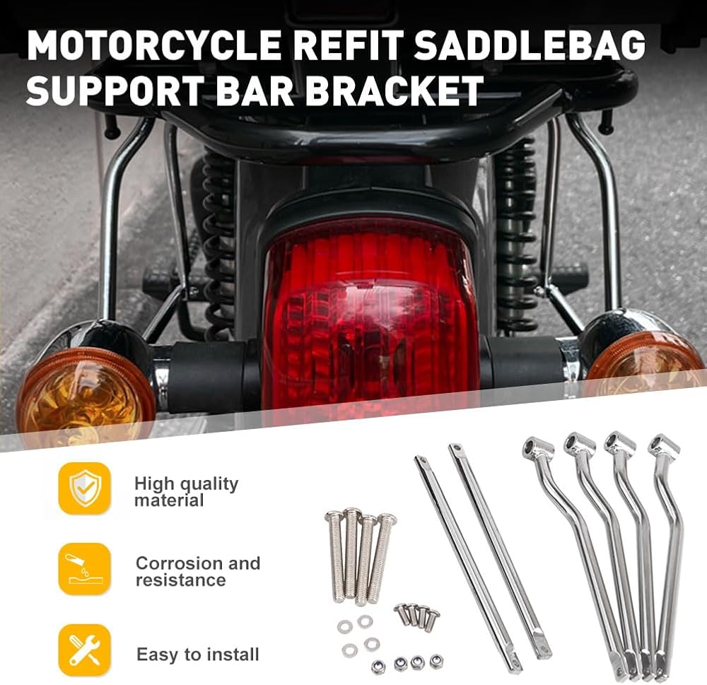 Newsmarts Universal Motorcycle Saddlebag Support Bars Mounting Brackets for Harley for HONDA for Kawasaki for Yamaha for Suzuki, Chrome
