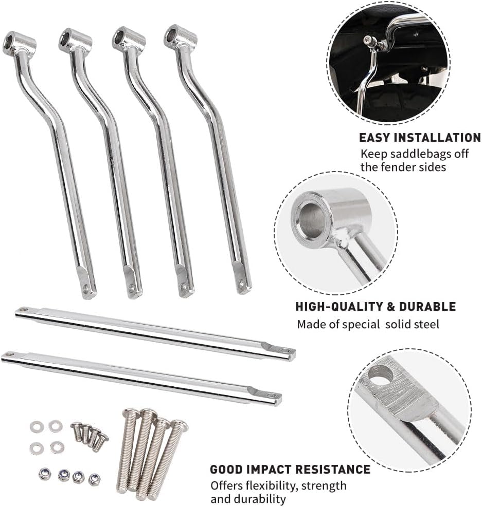 Package Includes two chromed steel saddlebag bracket, bolts and spacers