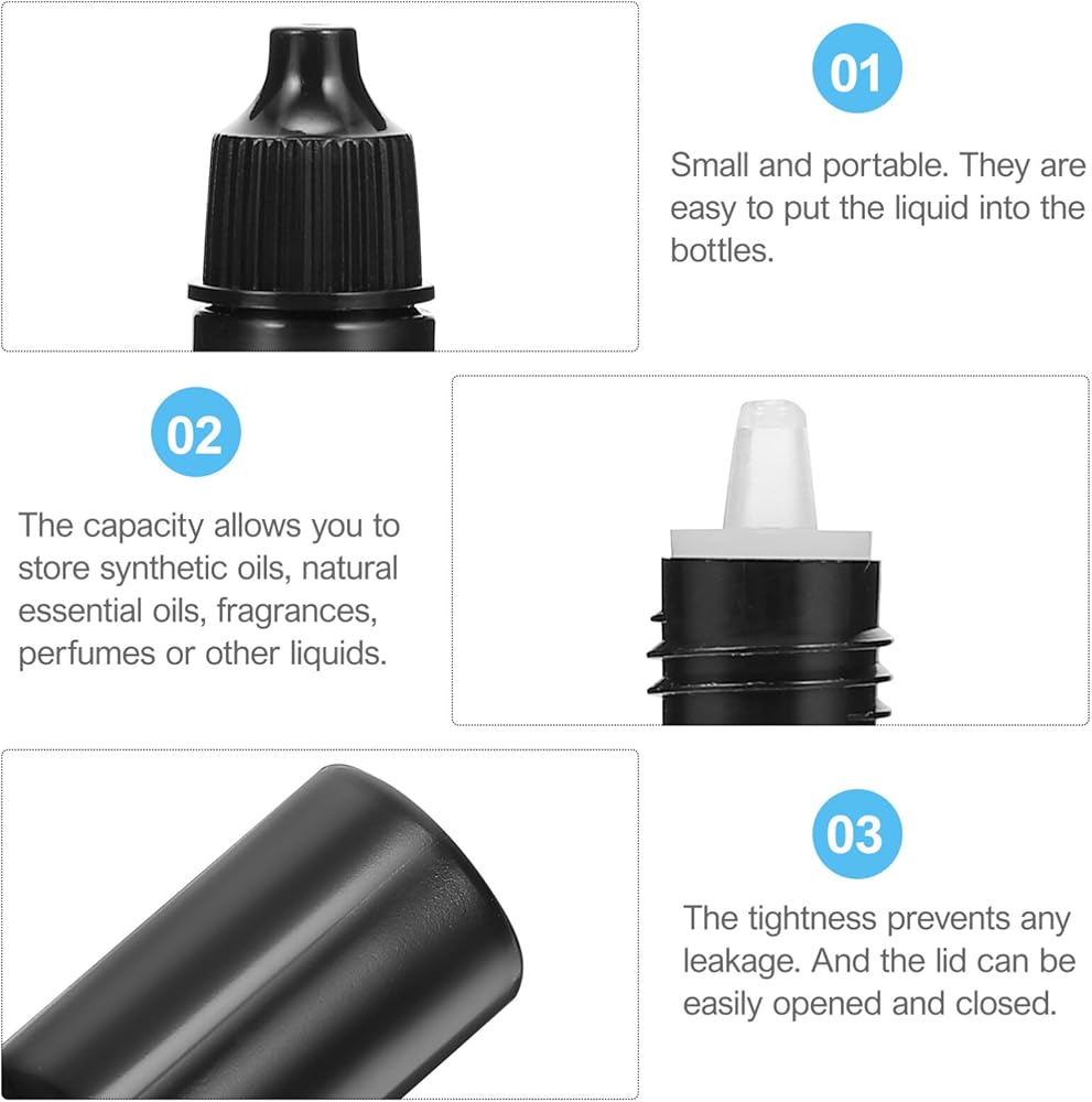 - تتمتع زجاجات القطارة القابلة للعصر بسعة كبيرة لتخزين الزيوت العطرية أو قطرات العين أو العطور أو السوائل الأخرى.