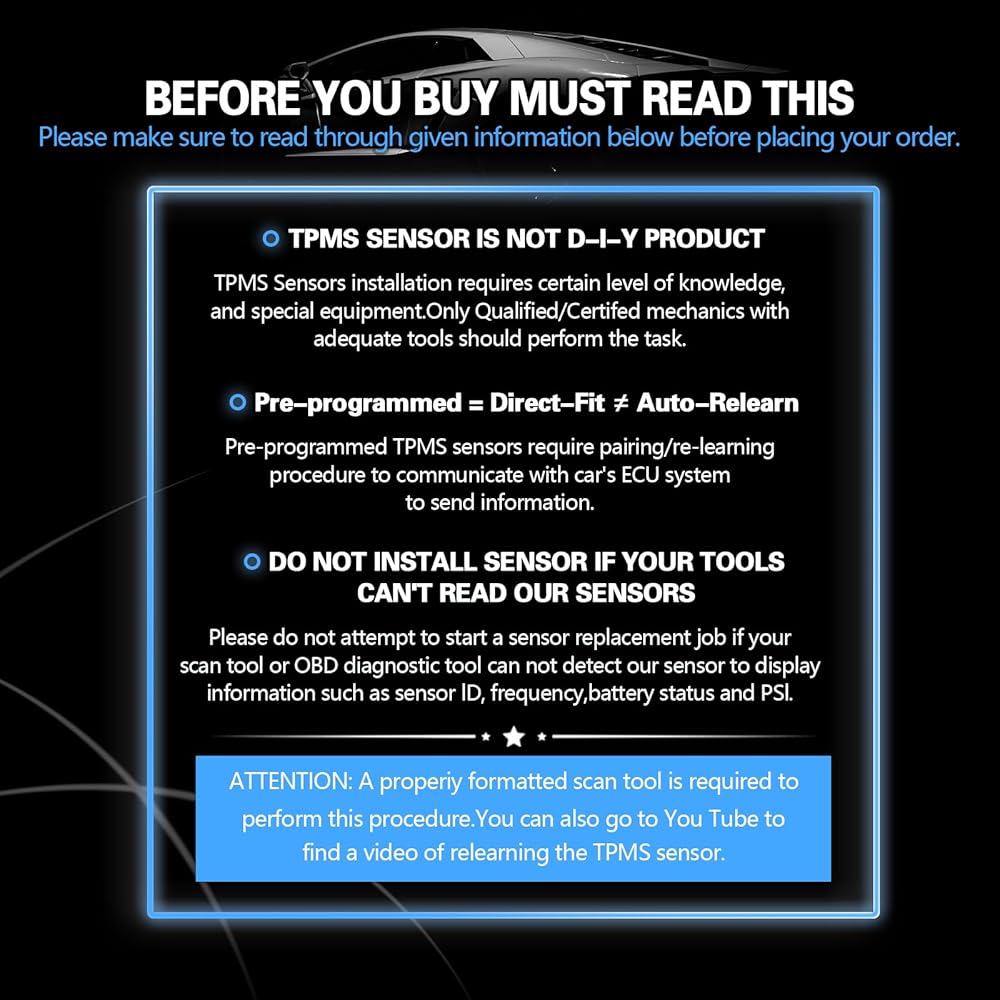 【سهلة التركيب】أنظمة مراقبة ضغط الإطارات POHILA (TPMS) مبرمجة مسبقًا، ولا تحتاج إلى برمجتها مرة أخرى. ويتم تصنيع مستشعرات الإطارات وفقًا لمواصفات OEM، ومن السهل جدًا تركيبها. بعد التثبيت، تحتاج فقط إلى تنشيطها باستخدام أداة الفحص.