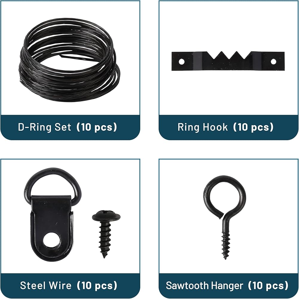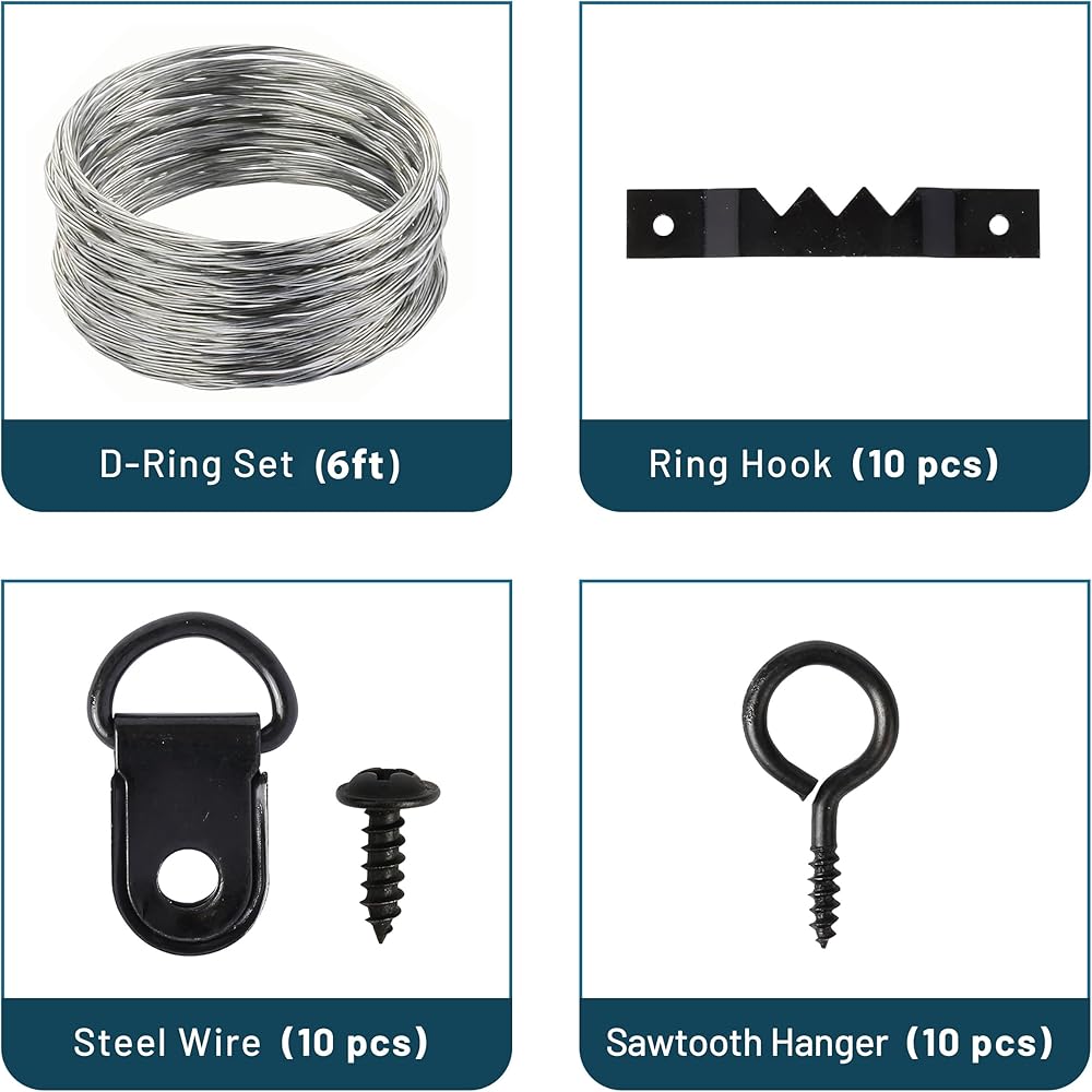 This essential hardware kit makes it easy to hang pictures, photos, posters, framed maps, framed postcards, and paintings in your home or office.
