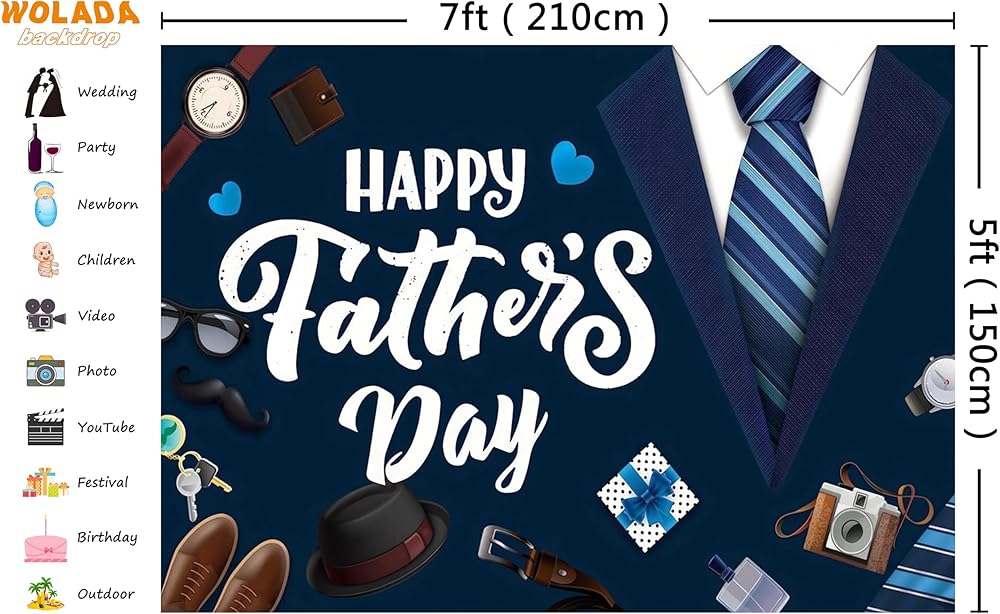 WOLADA عيد الأب السعيد خلفية عيد الأب خلفية ملصق خلفية عيد الأب للتصوير الفوتوغرافي خلفية حفلة عيد الأب 7x5FT FW30