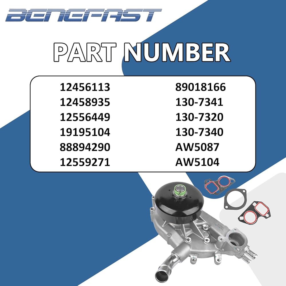 130-7341 130-7320 Water Pump with Gaskets Fits for Chevy Silverado Suburban SSR Tahoe Trailblazer GMC Savana Sierra Yukon Replaces 19195104 12456113