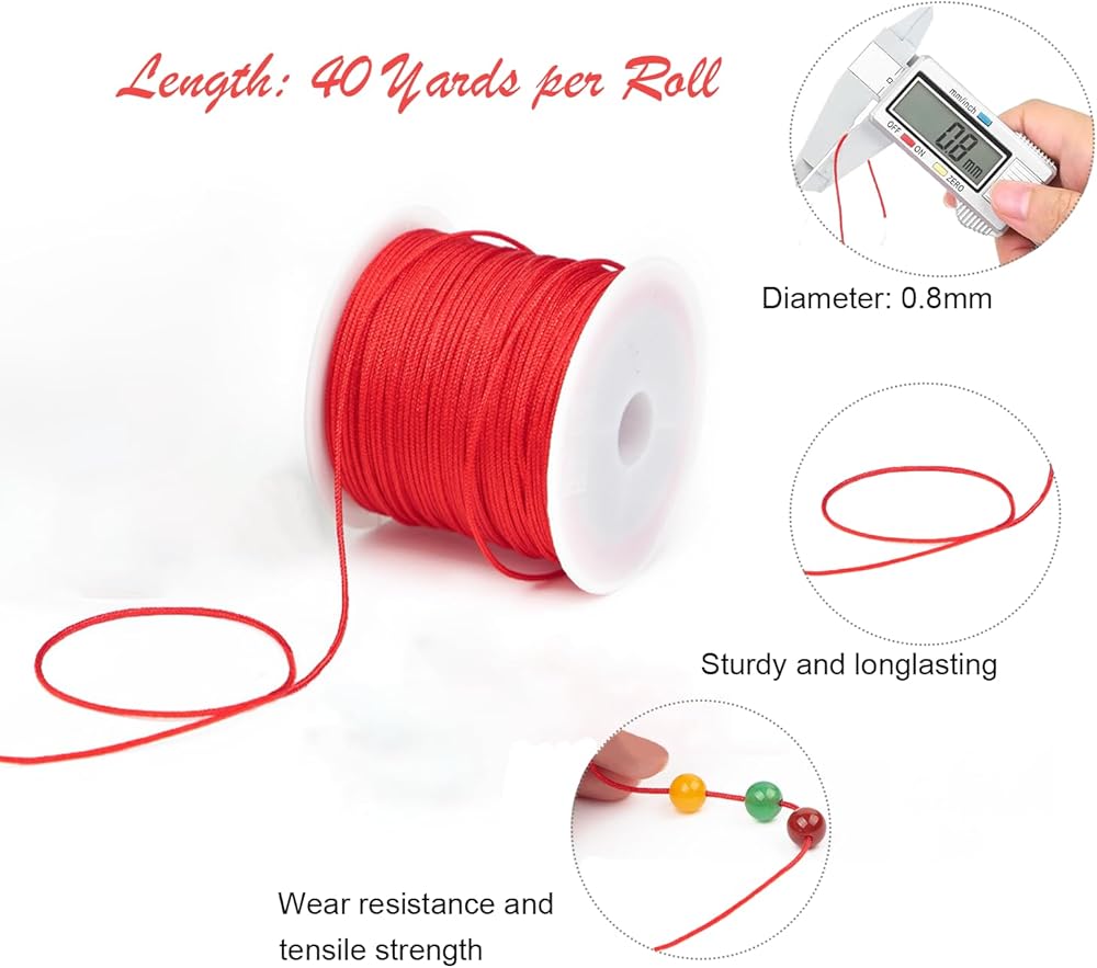 【Bracelet String Size】The string for bracelet making is approx. 0.8 mm in diameter, and 40 yards per roll in length