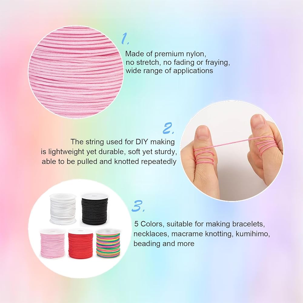 【5 Colors】Our nylon string is in 5 bright colors that are suitable for DIY crafts