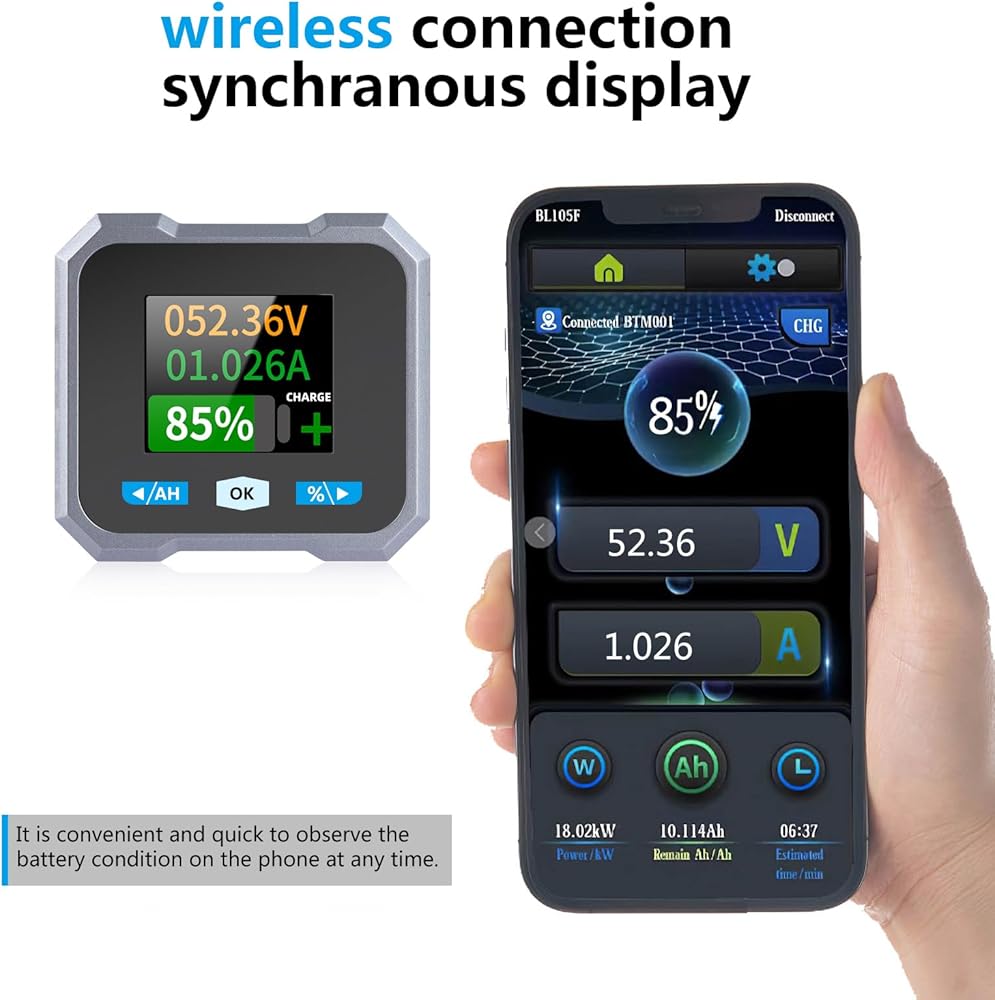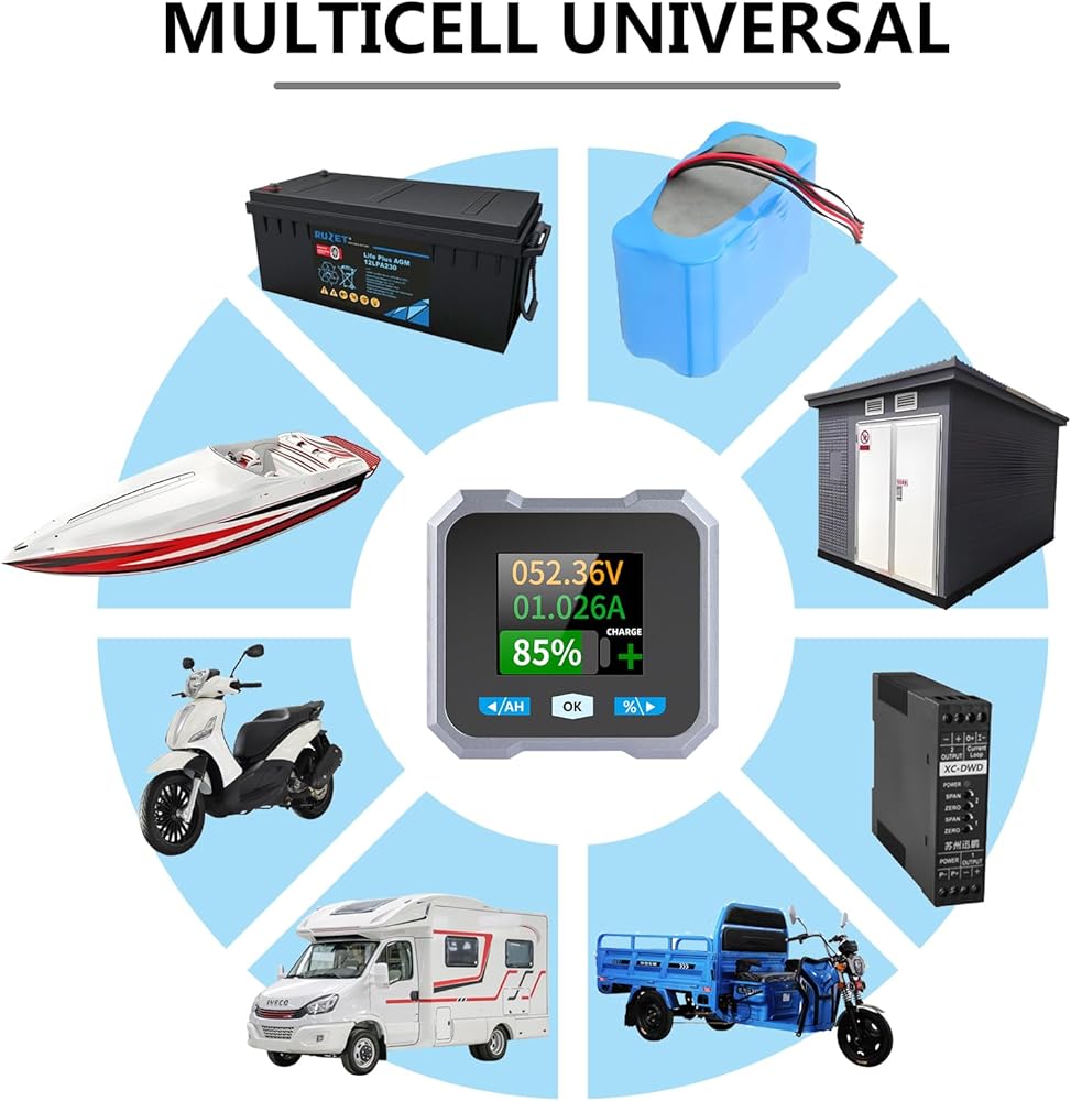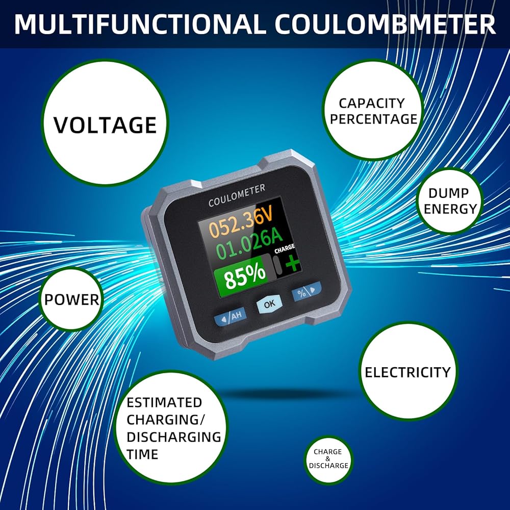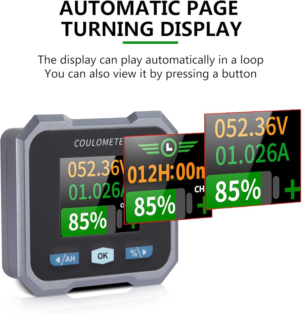 Special Battery Monitor for RV Cars and Electric Vehicles. This instrument can accurately display the remaining battery power, real-time display how long the battery can be fully charged, how long the remaining battery power can be used, and check the changes in voltage and current data during the working process.