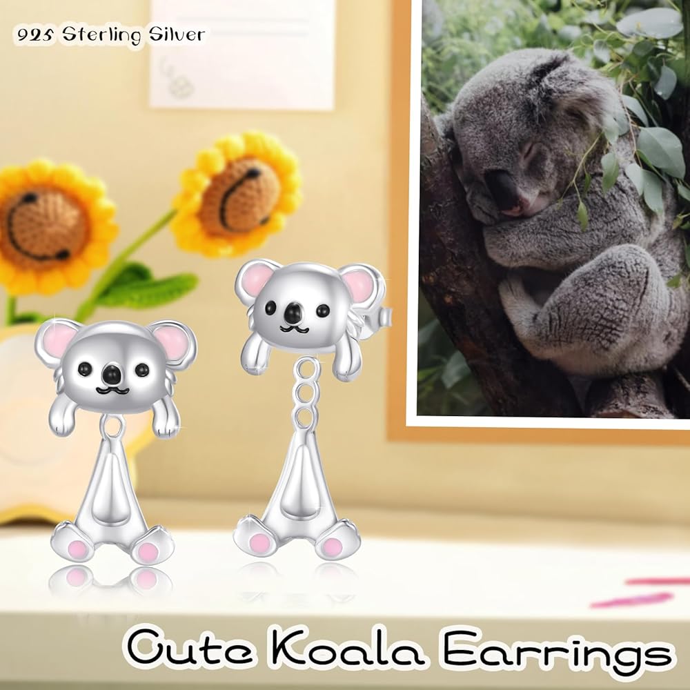 2. Crafted with S925 sterling silver, this earrings offers durability, hypoallergenic properties, and a stunning shine. Add a touch of nature-inspired beauty to your outfit with these koala earrings and let your playful and stylish side shine through.