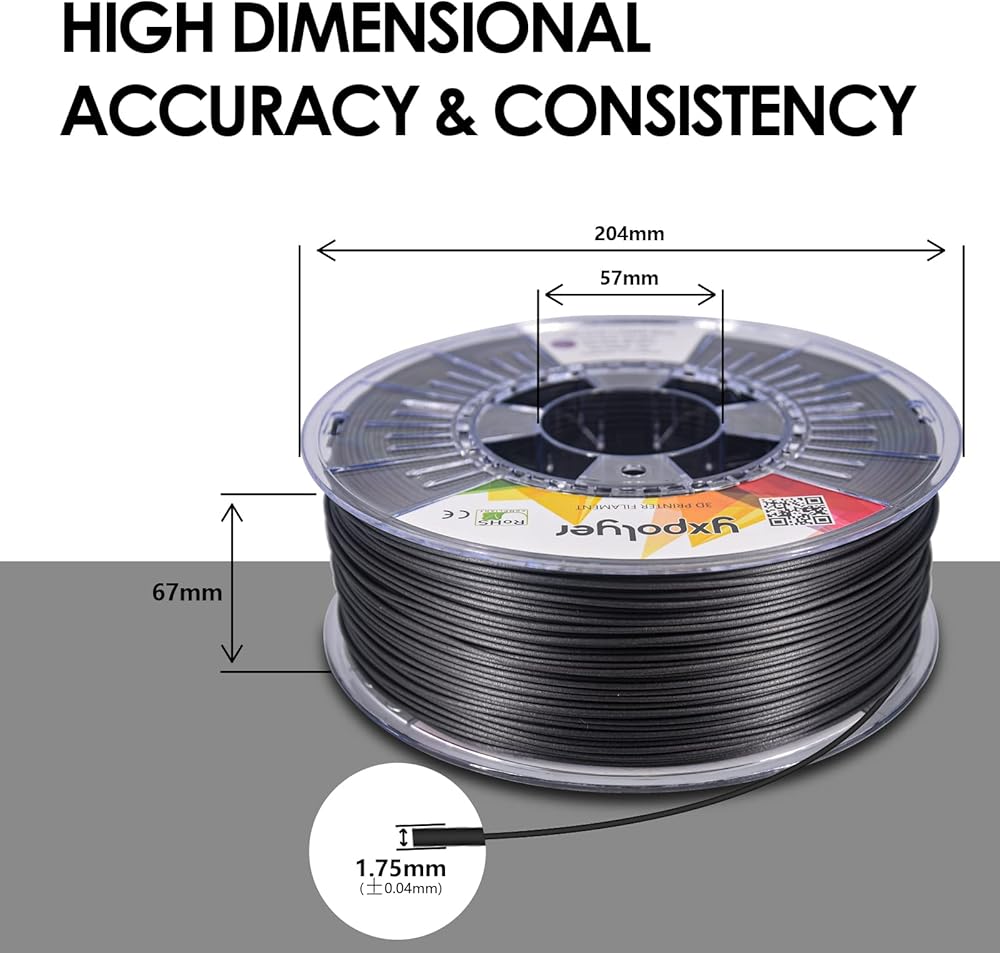 ★【تسامح الأبعاد المستقرة 】 YXPOLYER ABS ألياف الكربون خيوط طابعة ثلاثية الأبعاد دقة الأبعاد ± 0.04 مللي متر. تتميز خيوط YXPOLYER المصنوعة من ألياف الكربون ABS بتوافق واسع بسبب خطأ القطر الصغير، وهي مناسبة لجميع طابعات FDM ثلاثية الأبعاد مقاس 1.75 مم تقريبًا