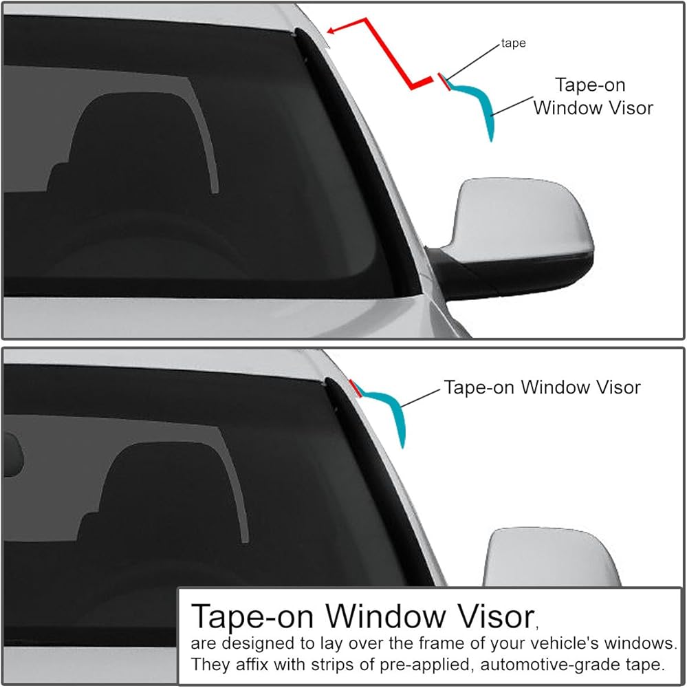 【Easy Installation】Installs with included adhesive tape (Non-In-Channel Visor), No tools or complicated instructions necessary