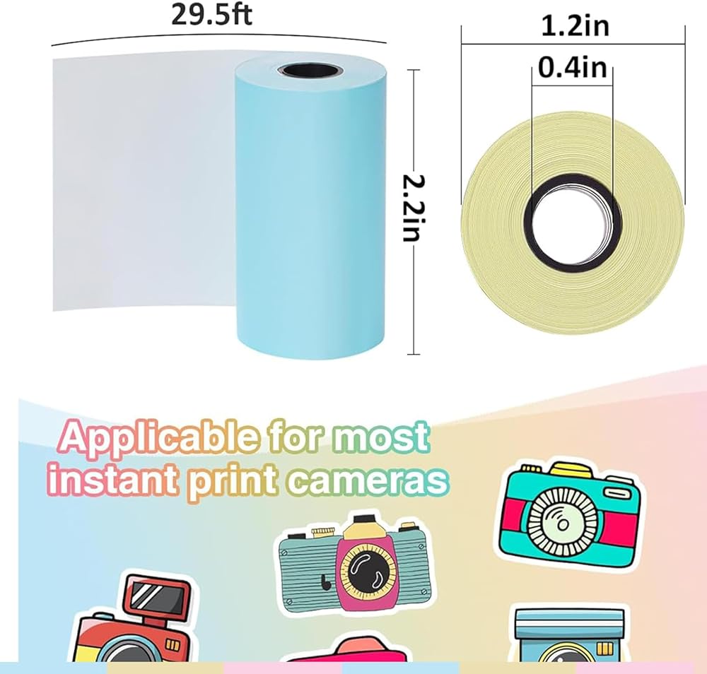 تشمل العبوة: سوف تحصل على مجموعة من 10 لفات من الورق الحراري المطبوع باللون الأبيض للكاميرا الفورية. يبلغ مقاس كل لفة حوالي 2.2*0.98 سم.