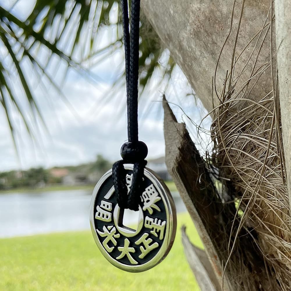 🌀 عملة محظوظة مزدوجة ذات وجهين - سحر الحظ السعيد اللطيف هذا عصري وذو مغزى. تحتوي على 8 رموز على جانب واحد و8 رموز على الجانب الآخر. ترمز العملة إلى الثروة والوفرة والحظ السعيد والازدهار في ثقافة فنغ شوي. ارتدي هذه التميمة كرمز للحظ السعيد والنجاح. إن الصناعة اليدوية عالية الجودة تجعلها مثالية للارتداء اليومي وتلهم المشاعر الإيجابية والطاقة الروحية. اعتقدت الحضارات القديمة أن العملات المعدنية المحظوظة يمكن أن تجذب المال والنجاح.