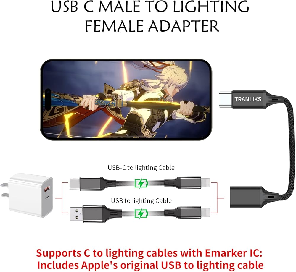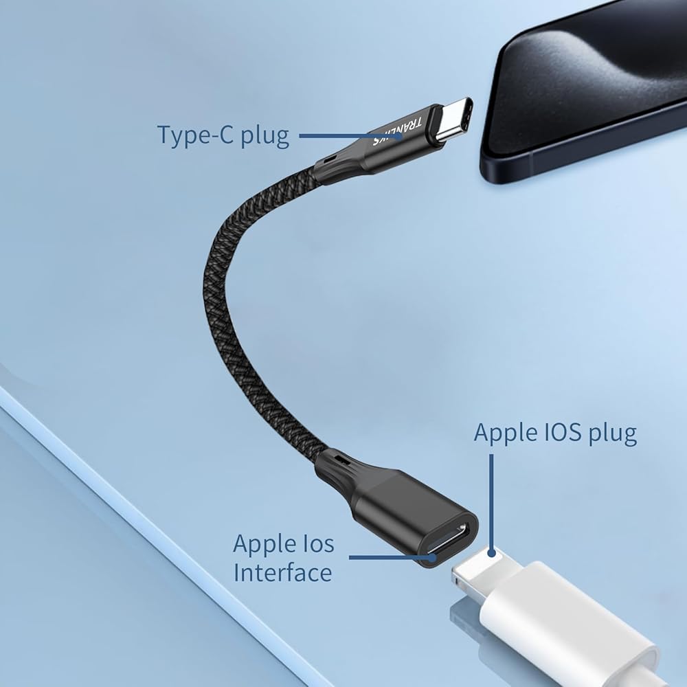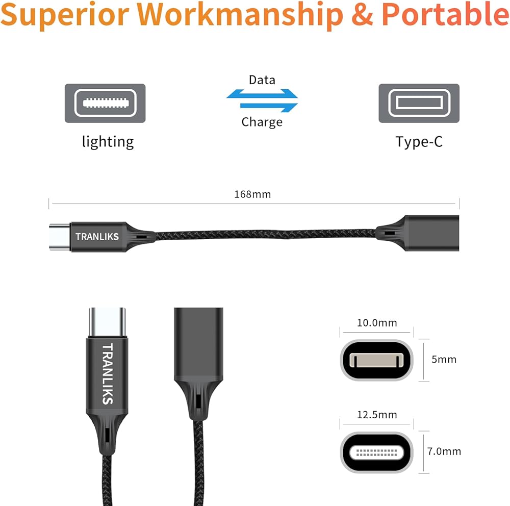 ⚡【شحن سريع PD 60 وات】يسمح لك TRANLIKS لمحول Lightning إلى USB C بشحن جهاز USB-C الخاص بك بسرعة وكفاءة باستخدام كابل إضاءة ومحول USB-C. (يدعم الشحن السريع حتى 60 وات) لا يزال بإمكانك استخدامه الكابلات الموجودة لشحن الأجهزة "القديمة" (غير متوافقة مع سماعات الرأس أو الفيديو/الصوت).