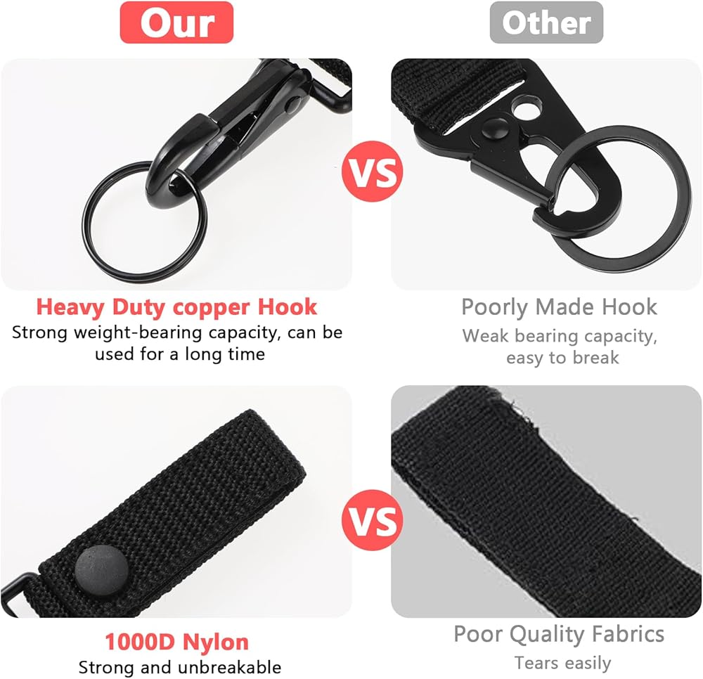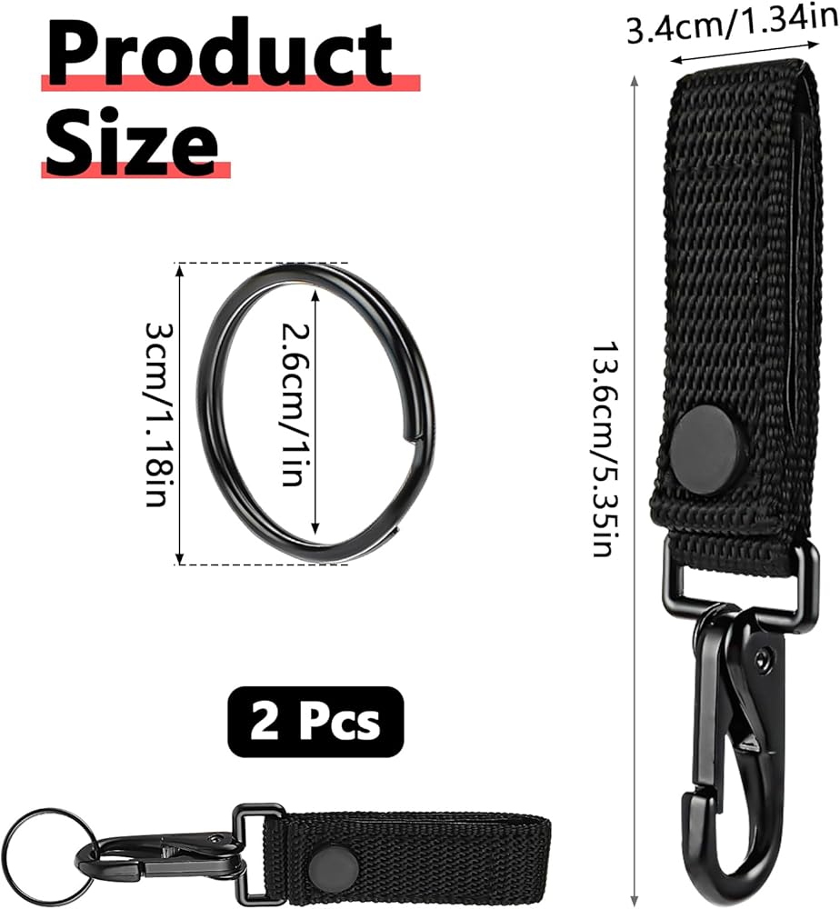 Durability: The belt keeper metal clip is made of heavy duty metal hooks and quality nylon webbing with tight stitching for strength and long-lasting durability. The combination of hook and loop and snap closure keeps the key very secure on the belt and will not slide around.