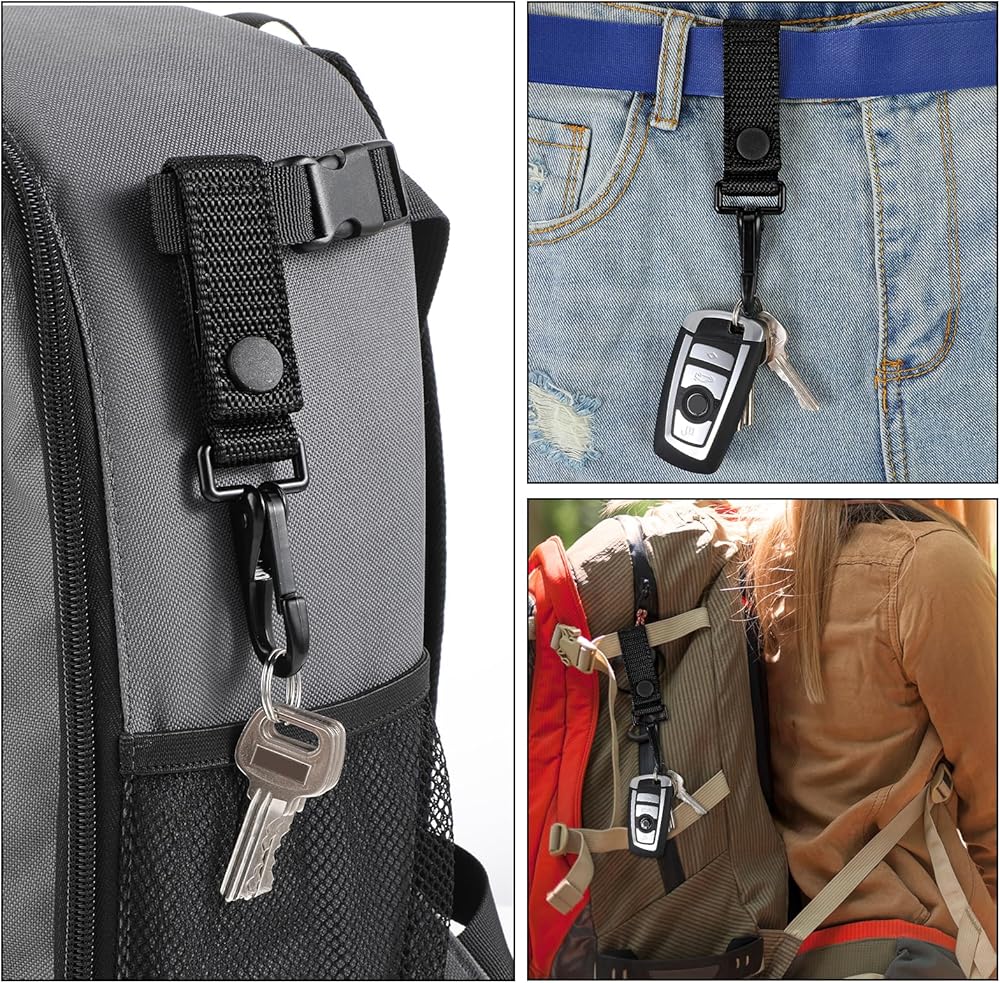 Multipurpose: Utility hook/holder for attaching key rings or small lightweight items with handle loops (such as tactical gloves/hats, etc.) to duty belts, everyday belts or backpacks. Good for camping, hiking, shooting and other outdoor activities.