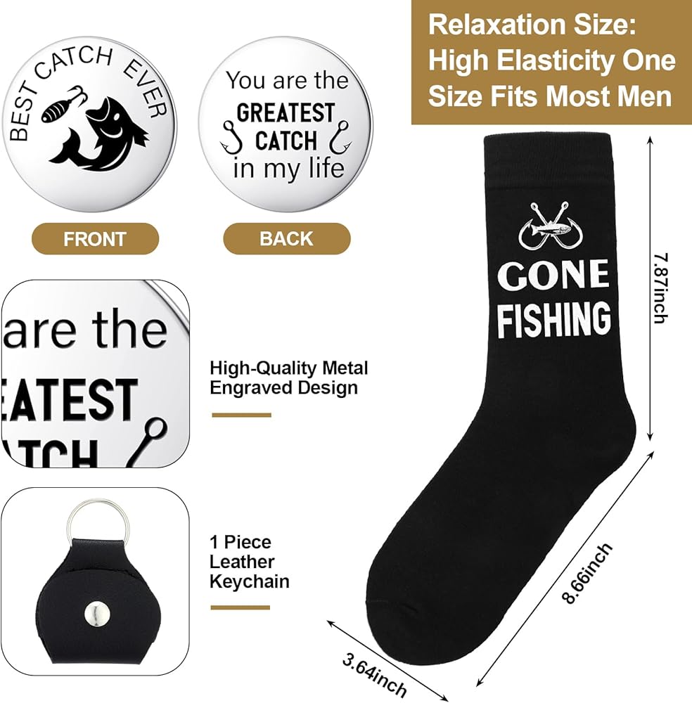 With versatile items included, the fishing gifts for men have a wide range of applications. The socks can be worn for any outdoor activities, not just fishing, while the flask can be applied to carry beverages of preference. The stainless steel token attached to a keychain can be applied as a design element on bags, cars, or home keys, reminding them of the love and care put into the gift.